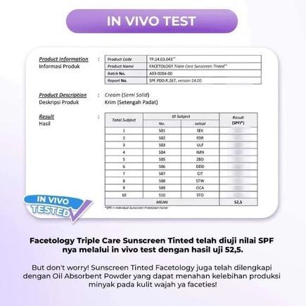 FACETOLOGY Triple Care Sunscreen Tinted SPF50PA++++ 40ML Bantu Samarkan PIH Hydrating & Matte Finish