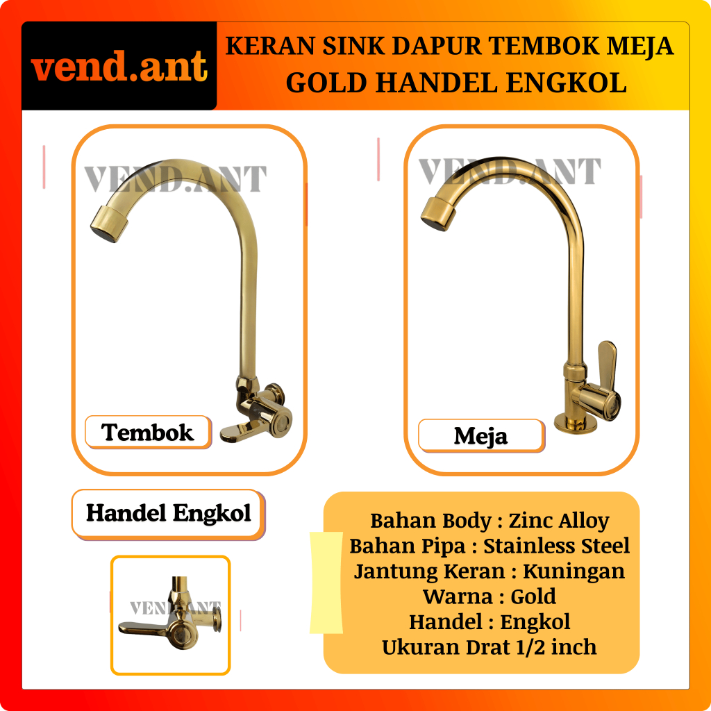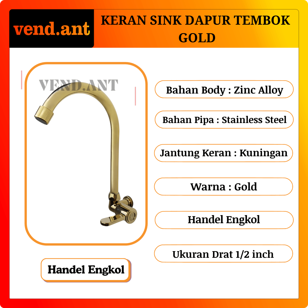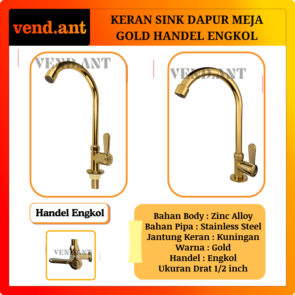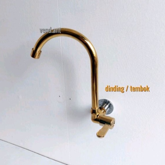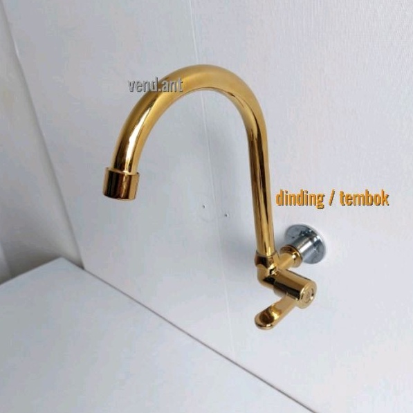 Keran Wastafel Bak Cuci Piring Dapur Tembok Meja Tancap Kran Sink Angsa Gold