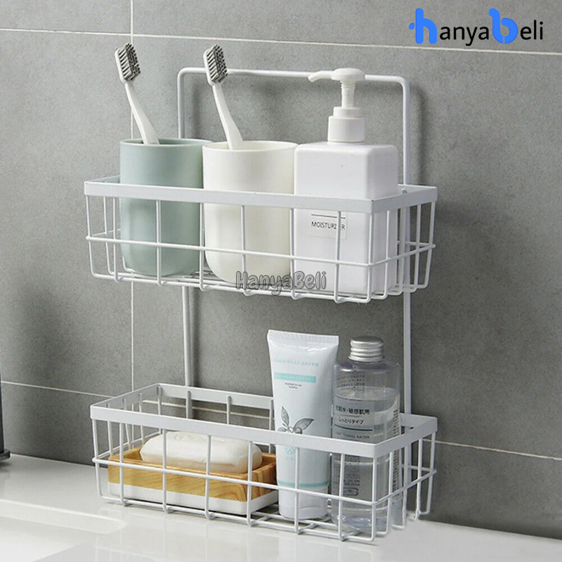 Rak Kamar Mandi 2 Tingkat Rak Dapur 2 Tingkat Tempel Dinding Anti Karat Rak Tempat Penyimpanan Serbaguna