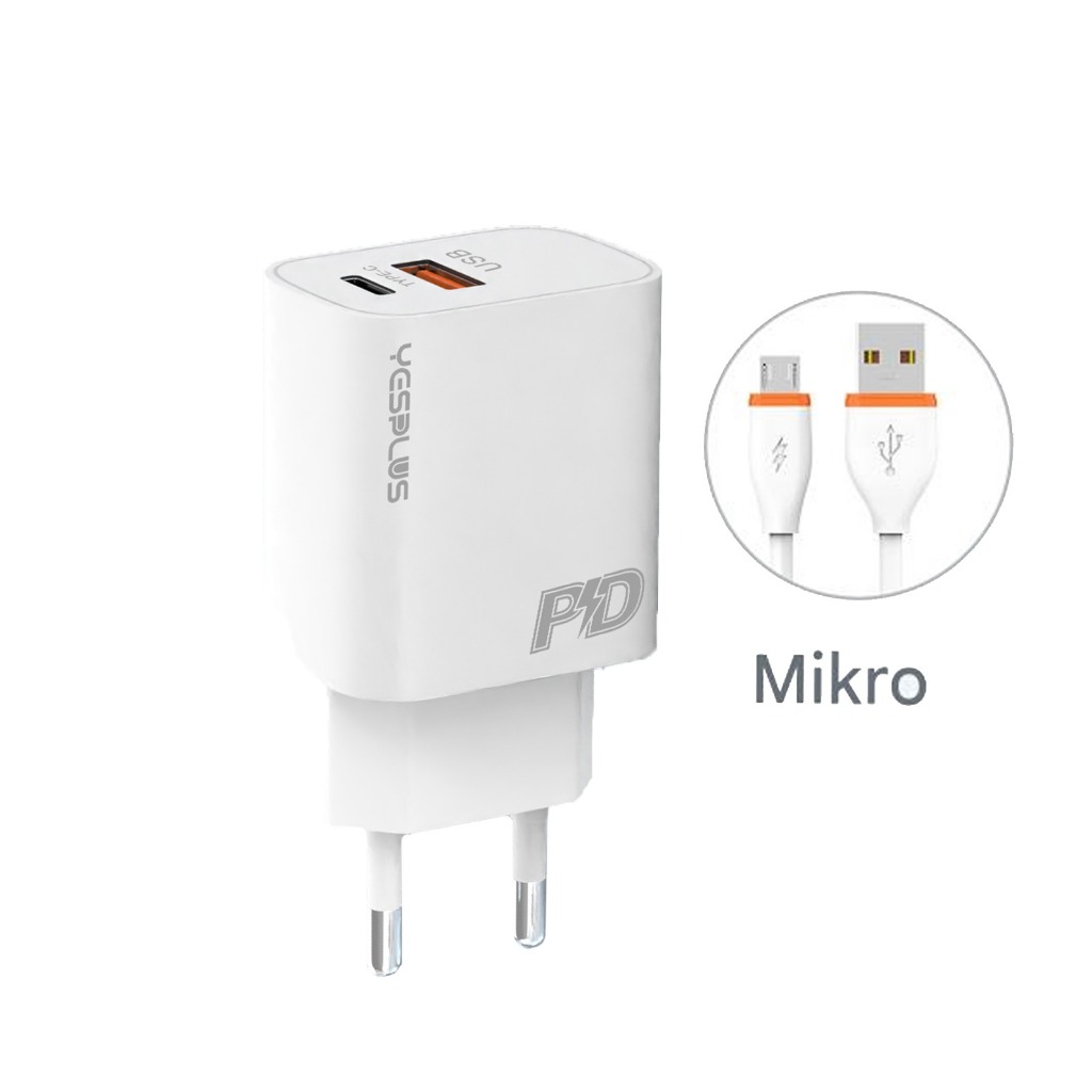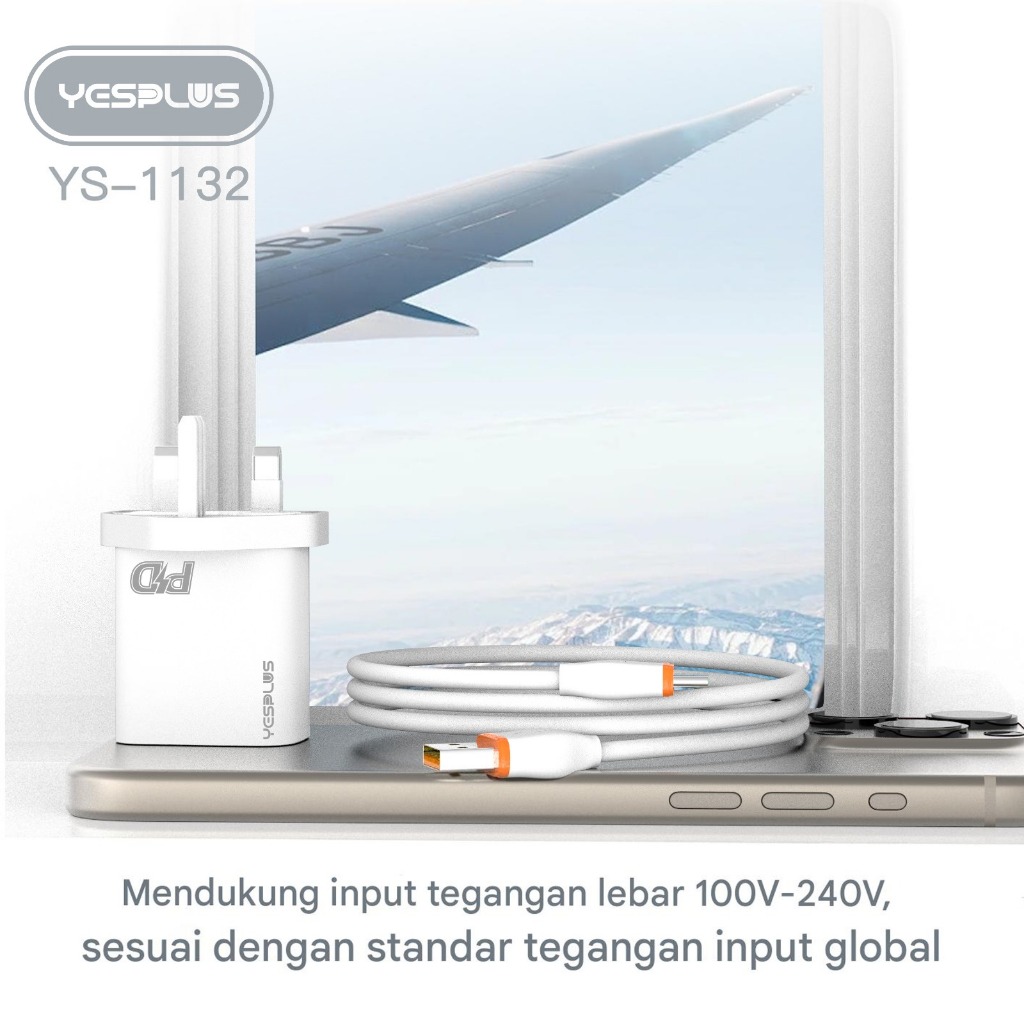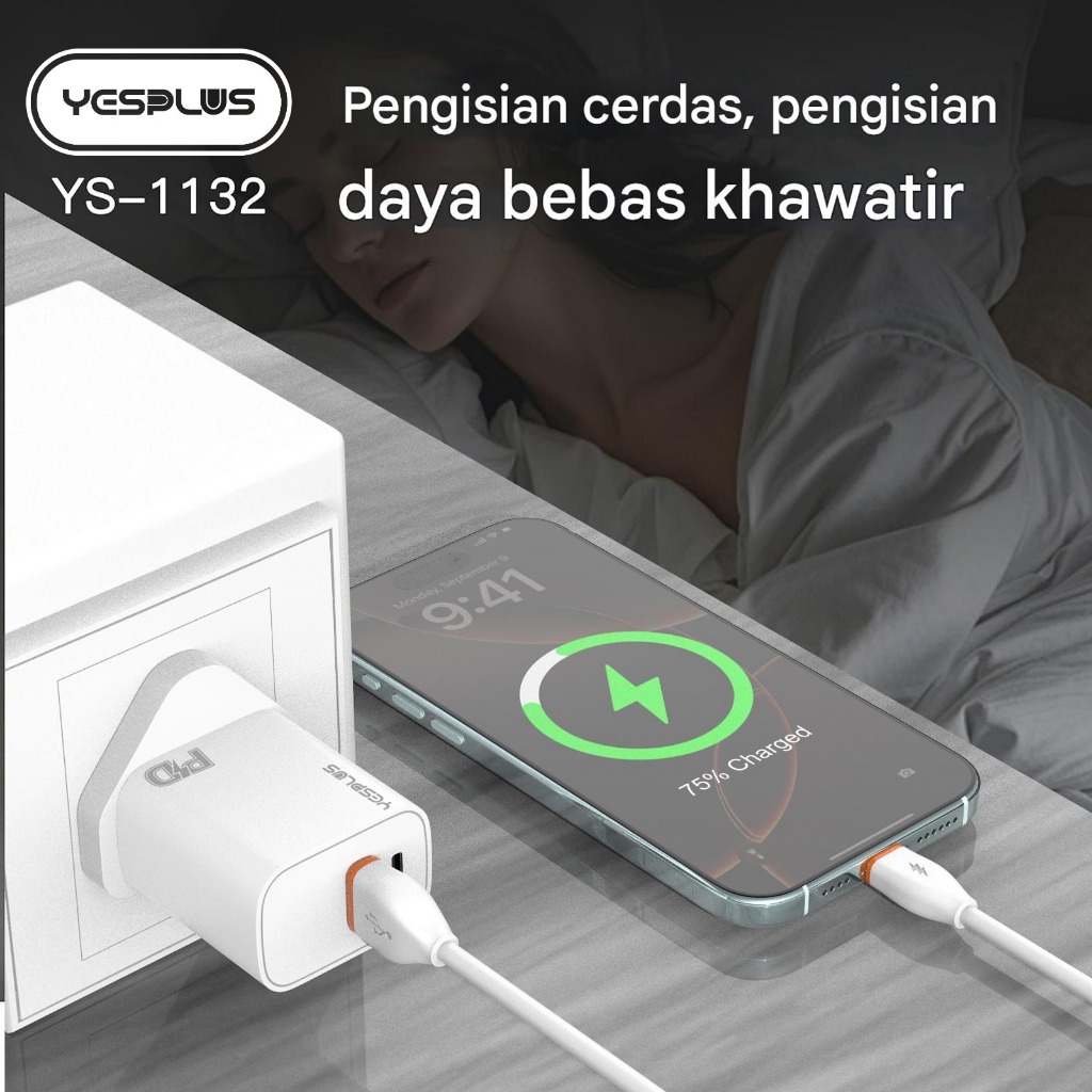 Charger YESPLUS YS-1132 PD Super Fast Charging Dual Port Type-C & USB Support Laptop/iPad