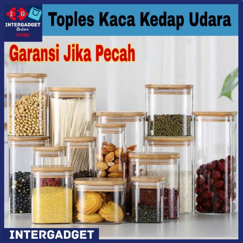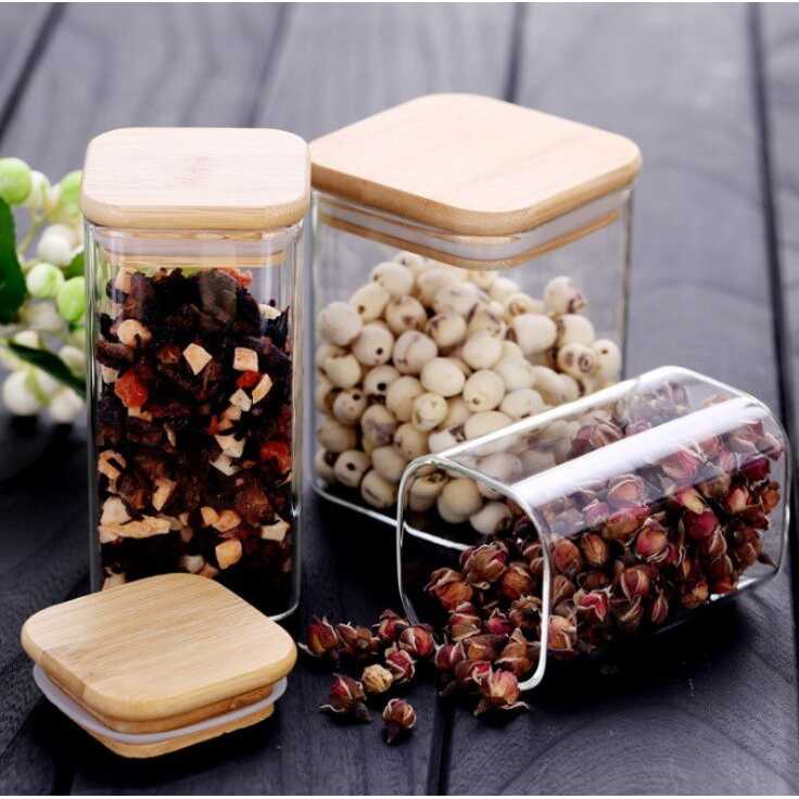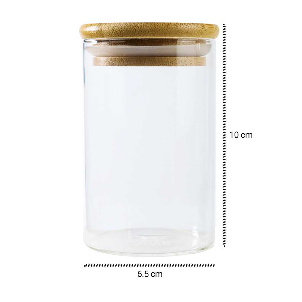 Toples Kaca Tutup Kayu Kedap Udara Borosilicate Glass Storage Jar