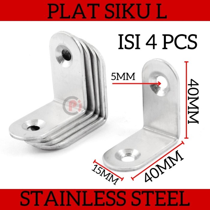 Isi 4 Pcs Plat Siku L Bahan Stainless Steel Ukuran 40 x 40 x 15 mm
