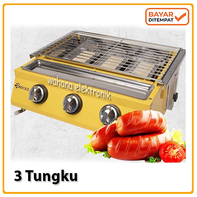 Kompor Sosis Bakar Sate Bakar 3 Tungku/BBQ GRILL Gas Kompor Panggang Termurah