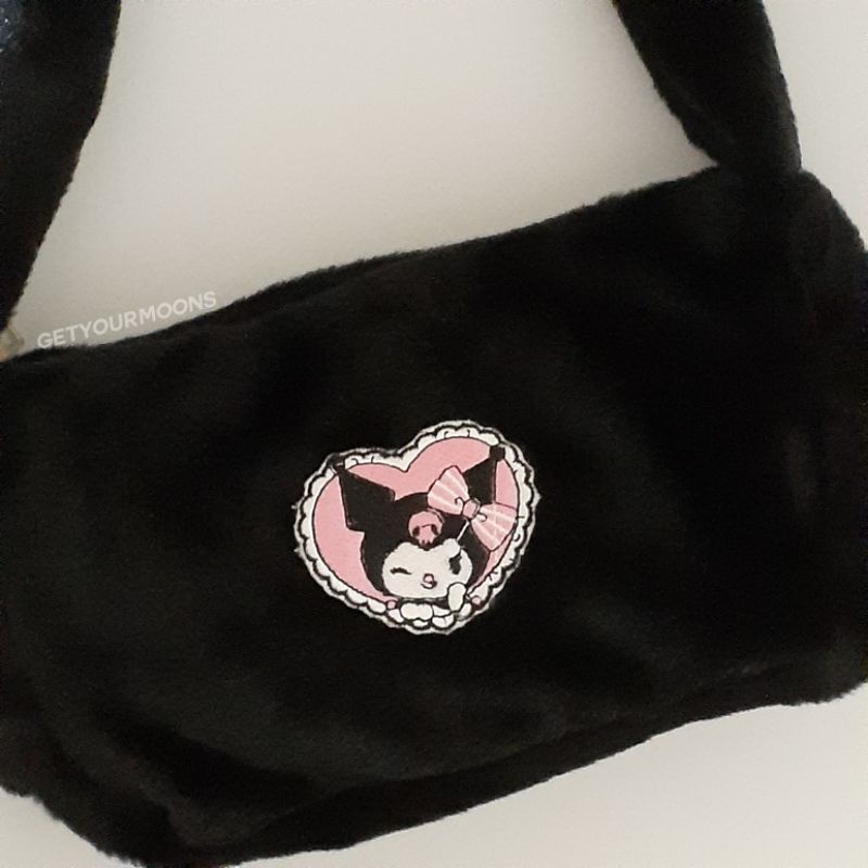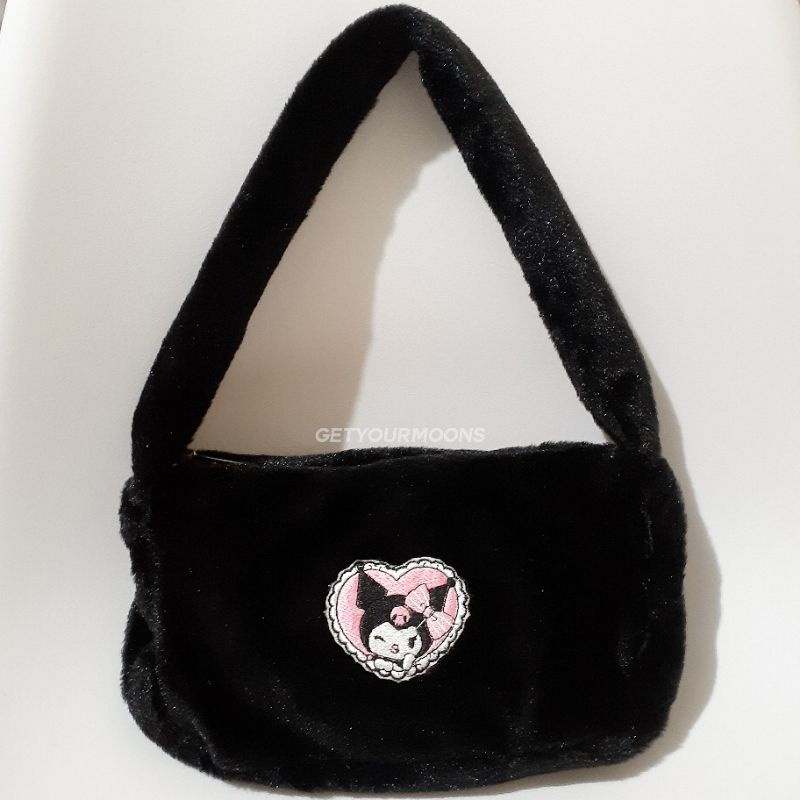 y2k fur bag "kuromi", kuromi fluffy bag, y2k fluffy bag, fur bag kuromi, tas bahu bulu getyourmoons. PREORDER 3-7 HARI