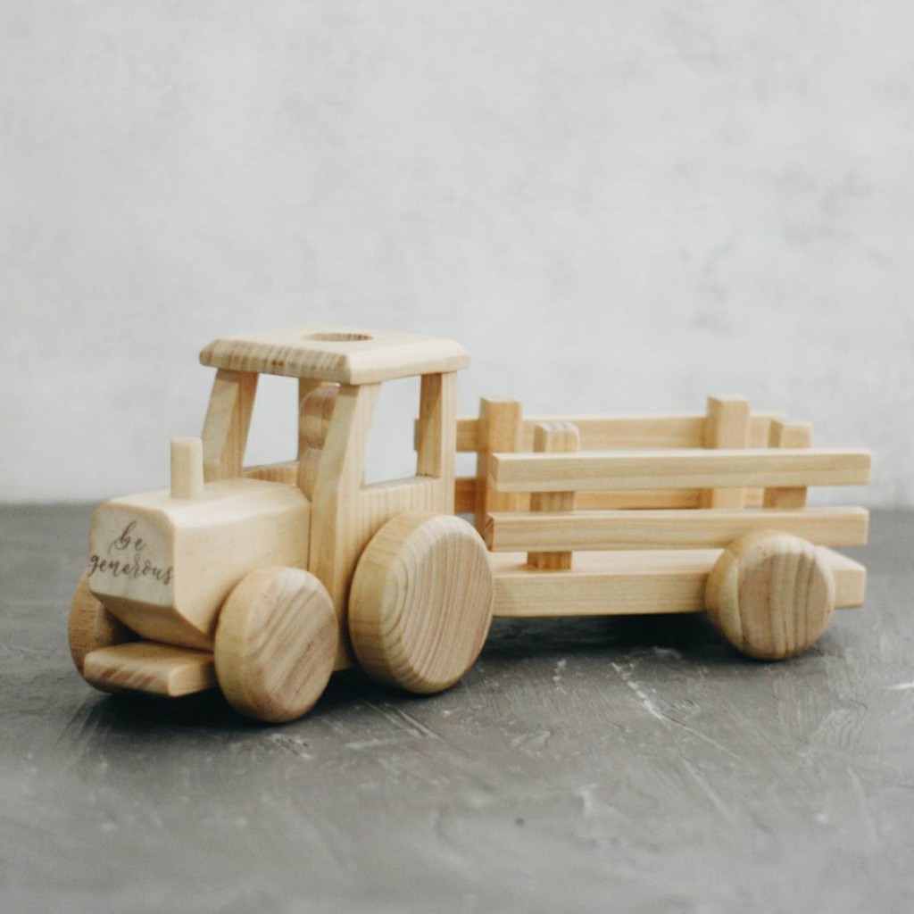 Lettering and Life Wooden Tractor Wagon with Peg Doll - Truk Kayu Mainan Mobil-mobilan truck toys