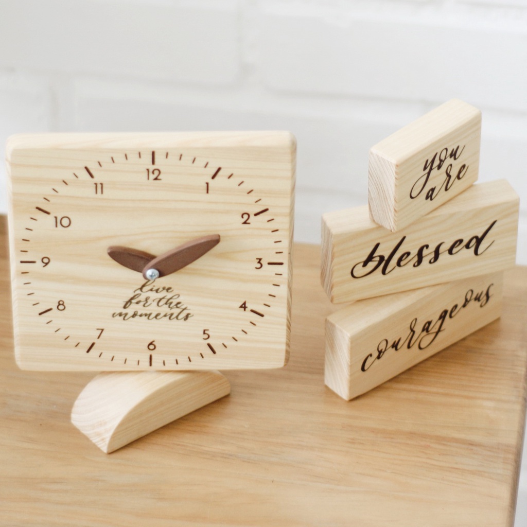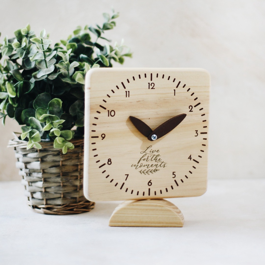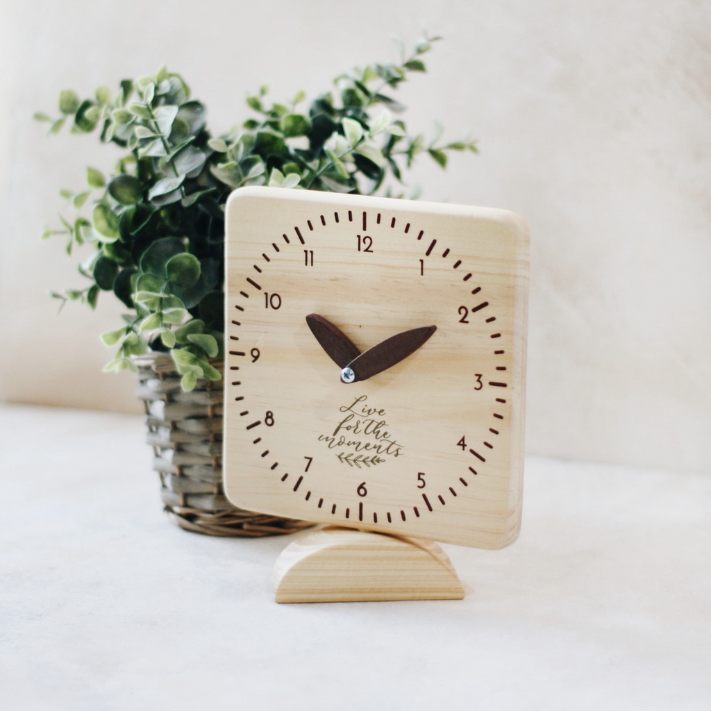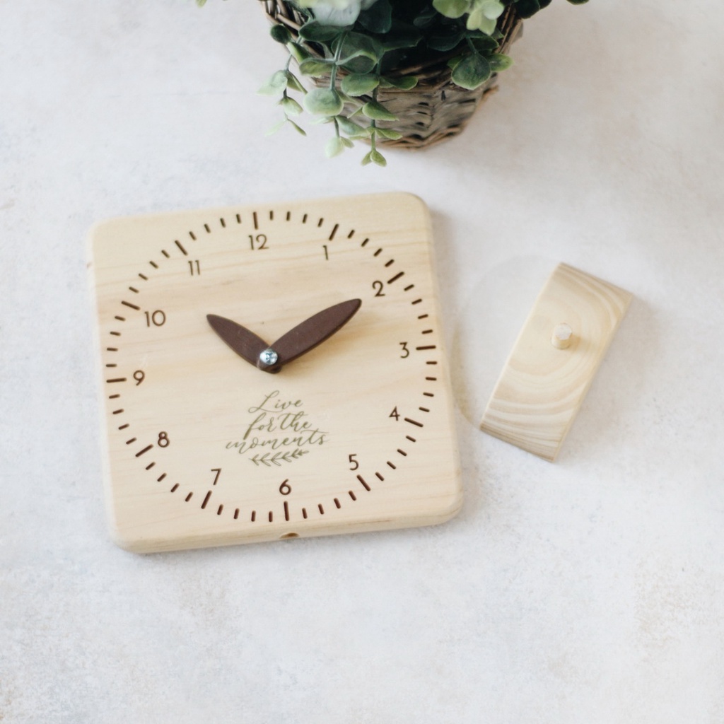 Lettering and Life Wooden Clock Square Mainan Edukasi Anak Table Clock Pajangan Rumah Wooden toys