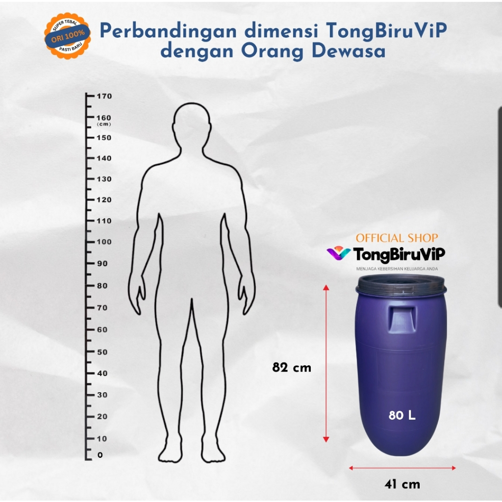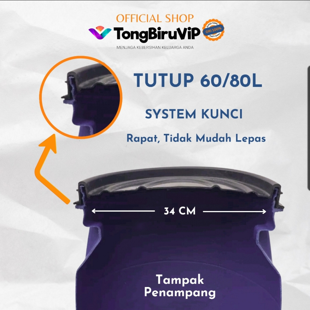 80L Tempat Sampah Biru/ Tong Air Biru SUPER TEBAL & KUAT 80L (termasuk Tutup)