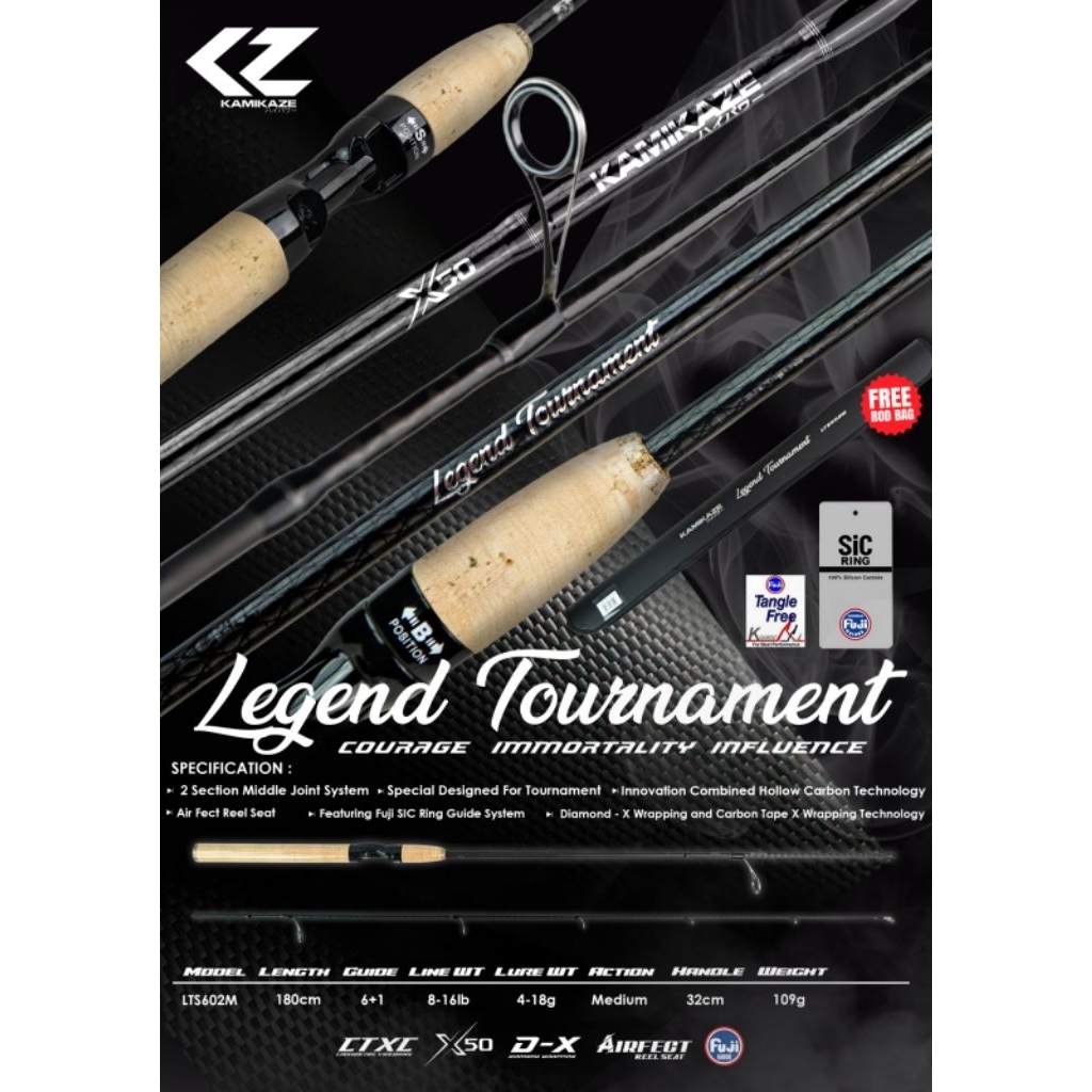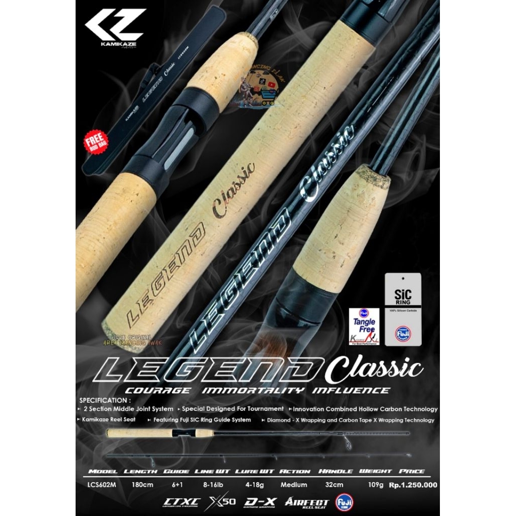 Joran KAMIKAZE LEGEND CLASSIC & TOURNAMENT 602M/180CM 8-16LB (GAGANG KAYU) Galapung - Fuji SiC