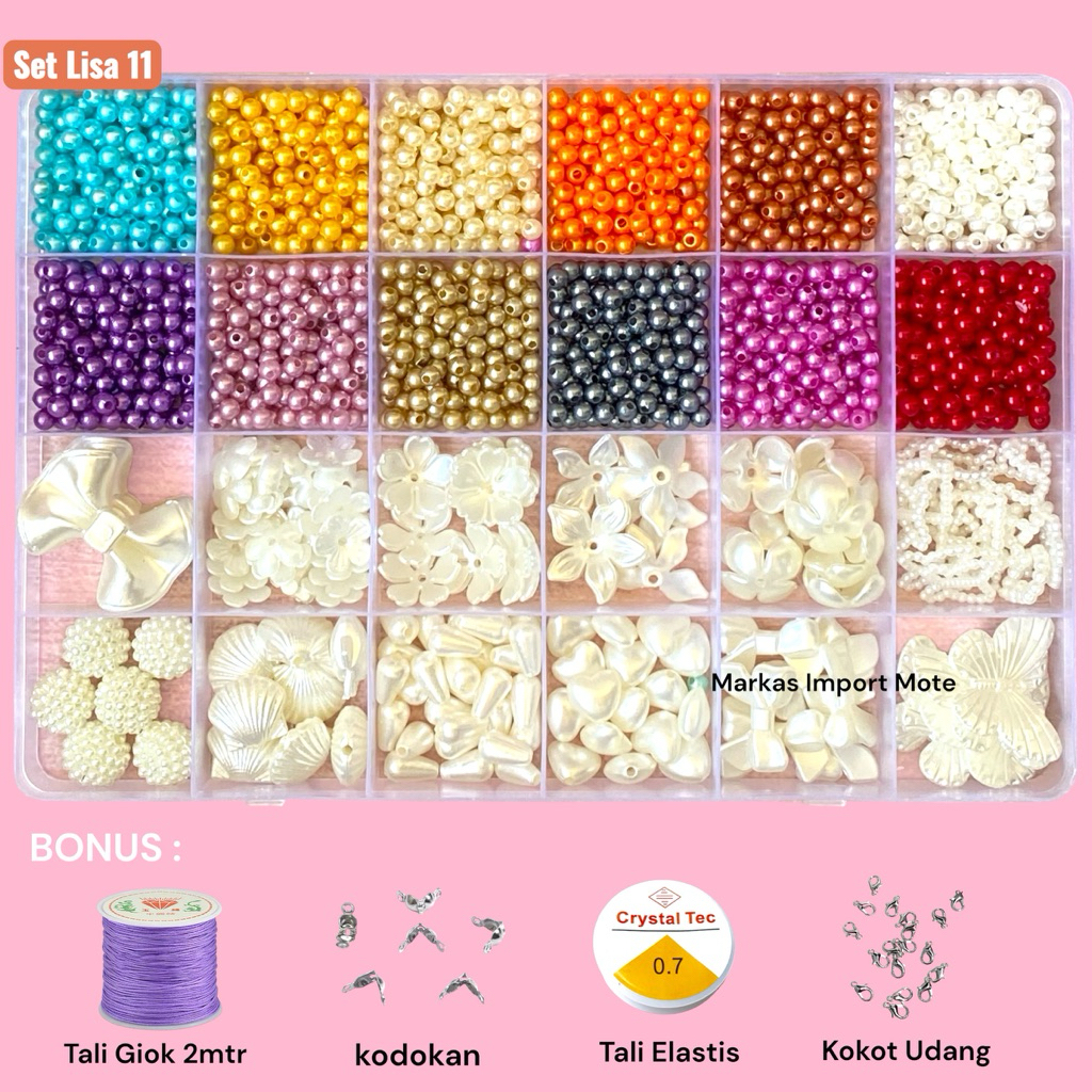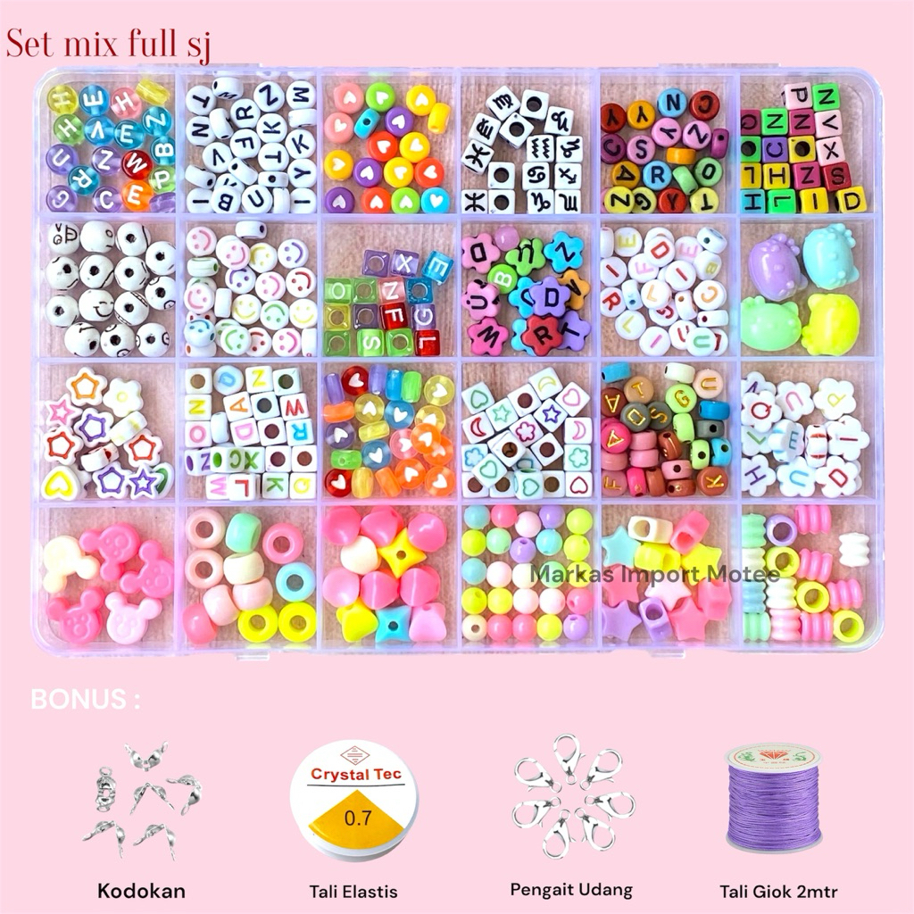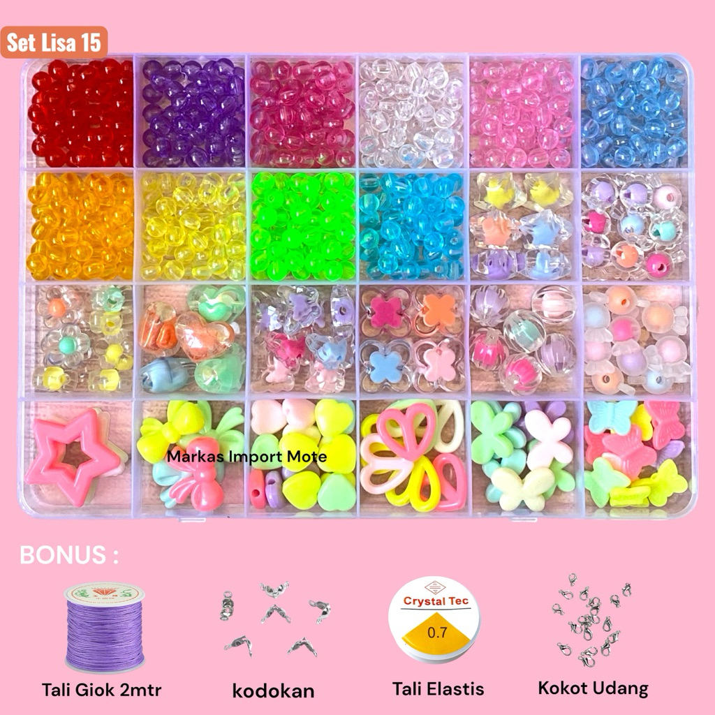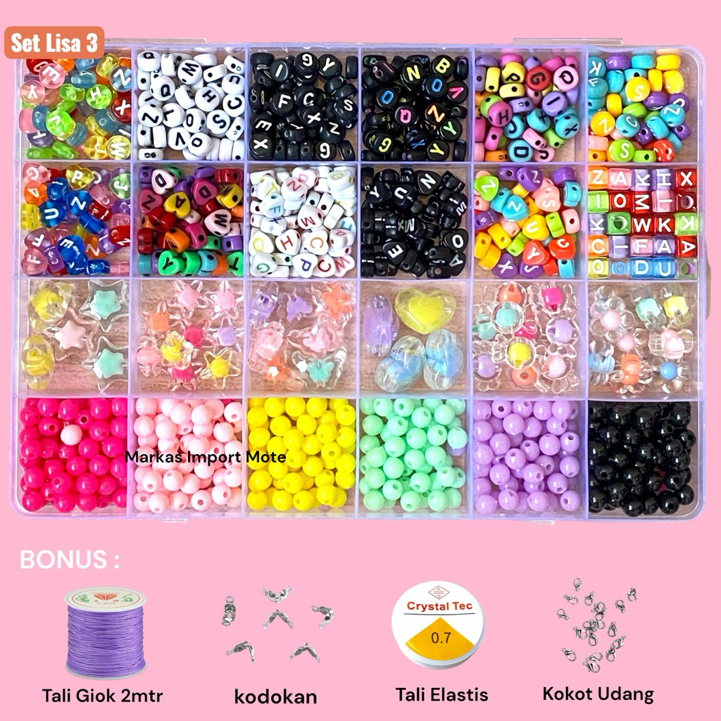 Mote Set Manik Manik DIY Lengkap Aesthetic Gelang Cincin Kalung / DIY Gelang manik manik box meronce manik anak / Beads Kit DIY 24 Warna Aesthetic