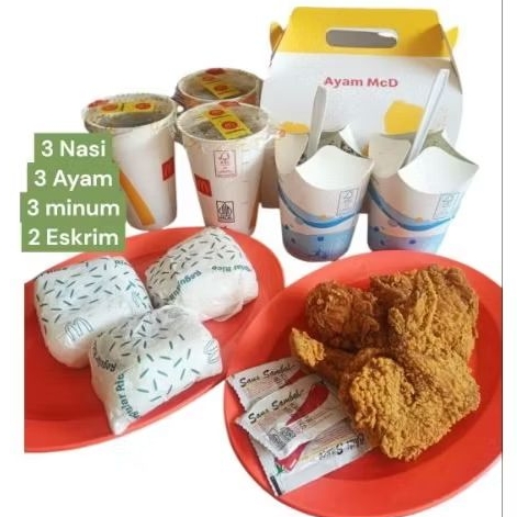paket mcd murah (3 ayam, 3 nasi, 3 minum, 2 ice cream) HANYA INSTAN