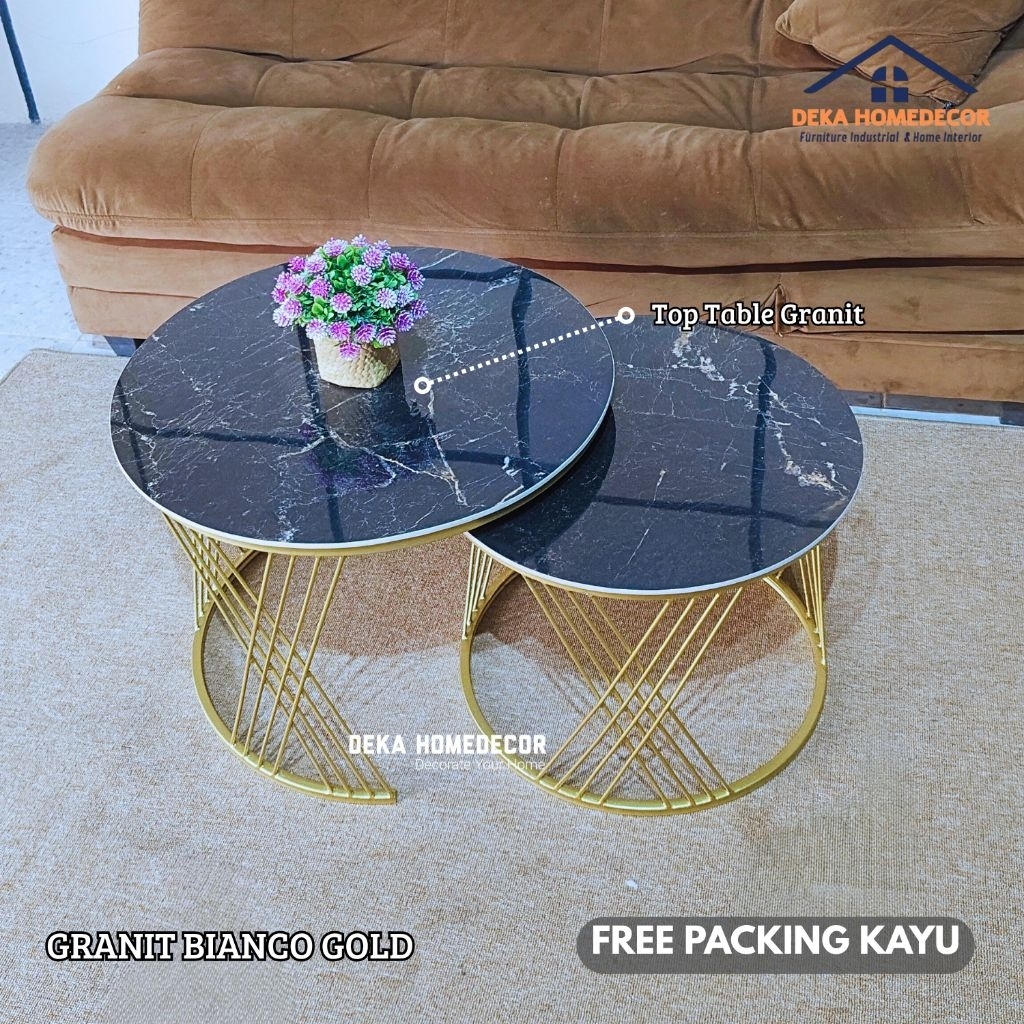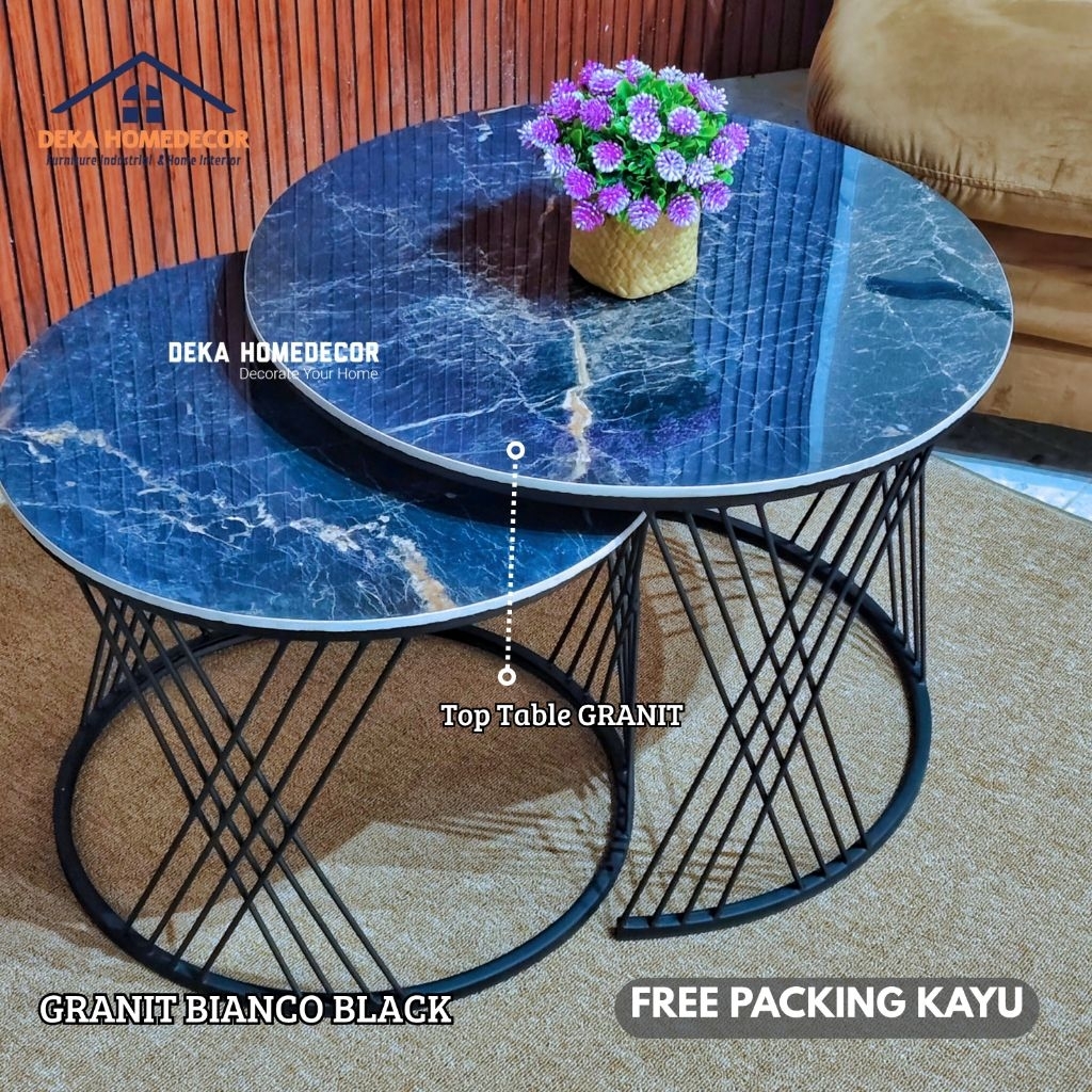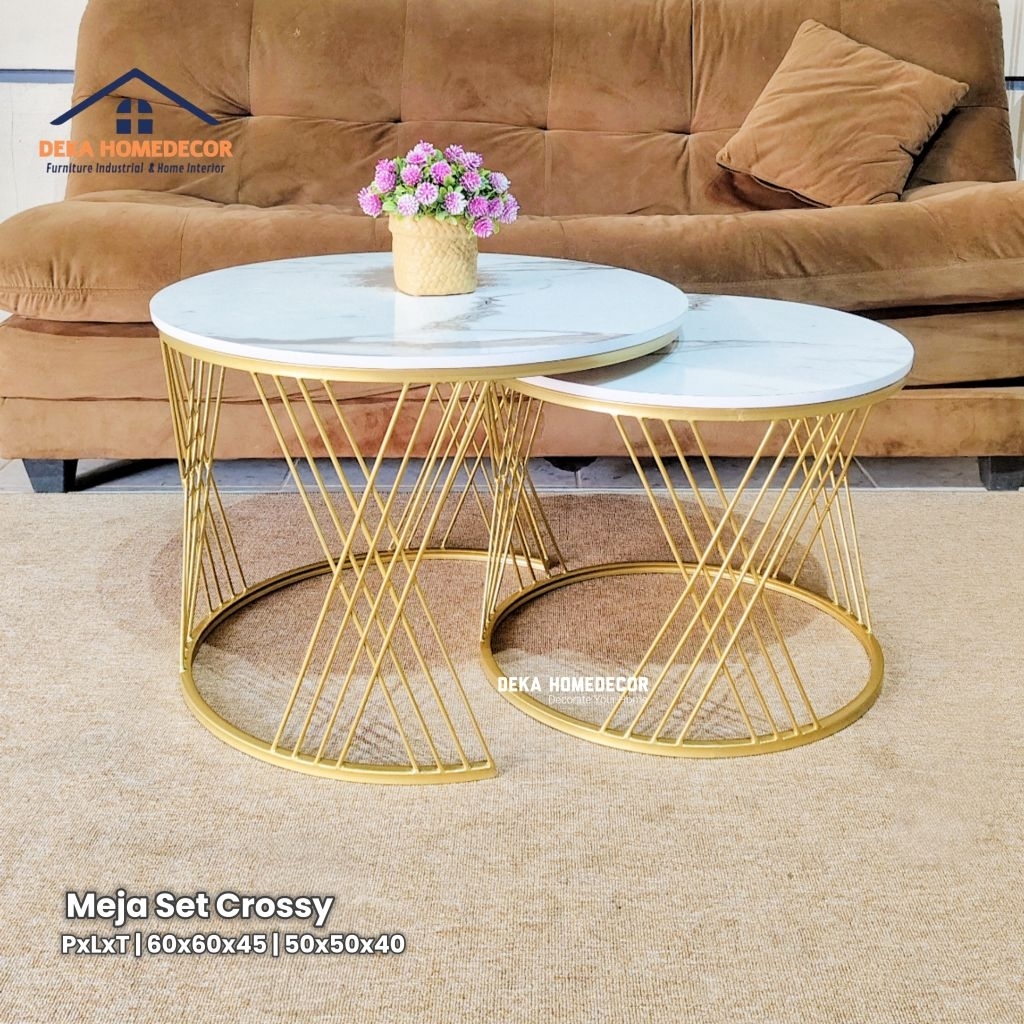 Meja Tamu Minimalis CROSSY / Meja Tamu Granit / Meja Bulat Aesthetic Modern / Furniture Ruang Tamu