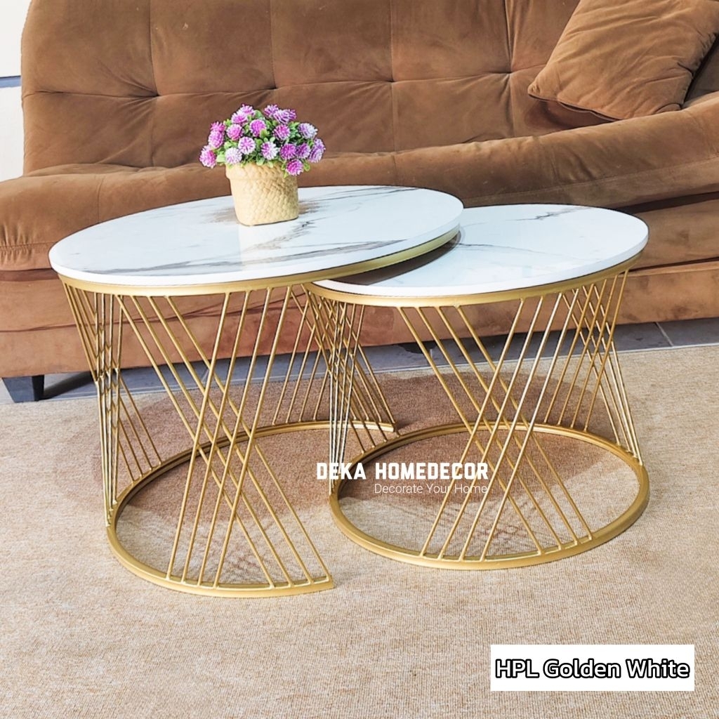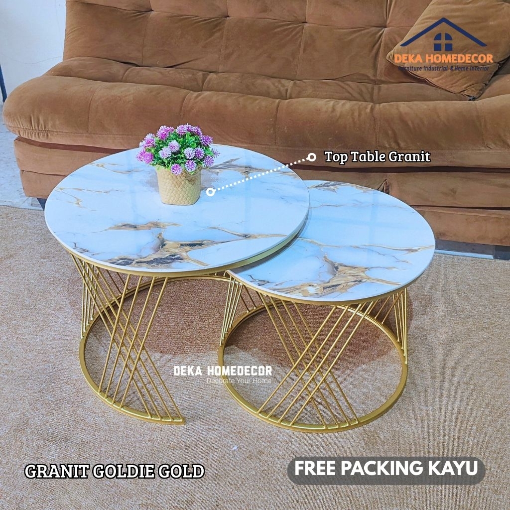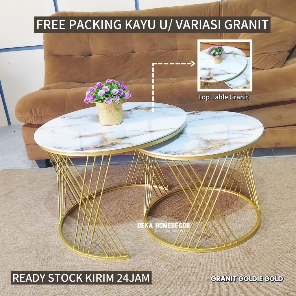 Meja Tamu Minimalis CROSSY / Meja Tamu Granit / Meja Bulat Aesthetic Modern / Furniture Ruang Tamu