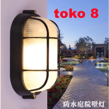 LAMPU BALL ICE E27 / LAMPU KAPAL OVAL / LAMPU DINDING OUTDOOR WATERPROOF - LAMPU DINDING HITAM