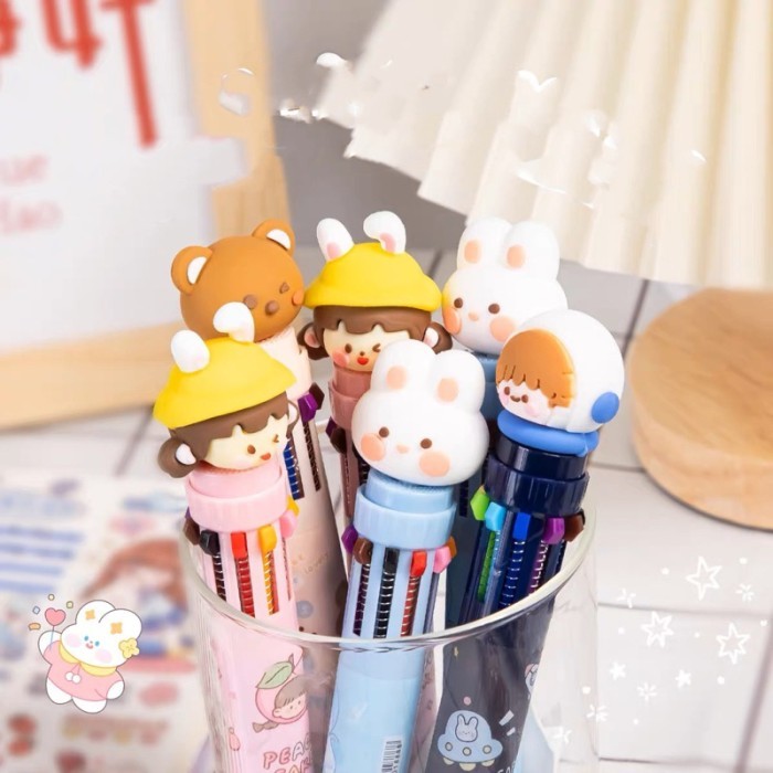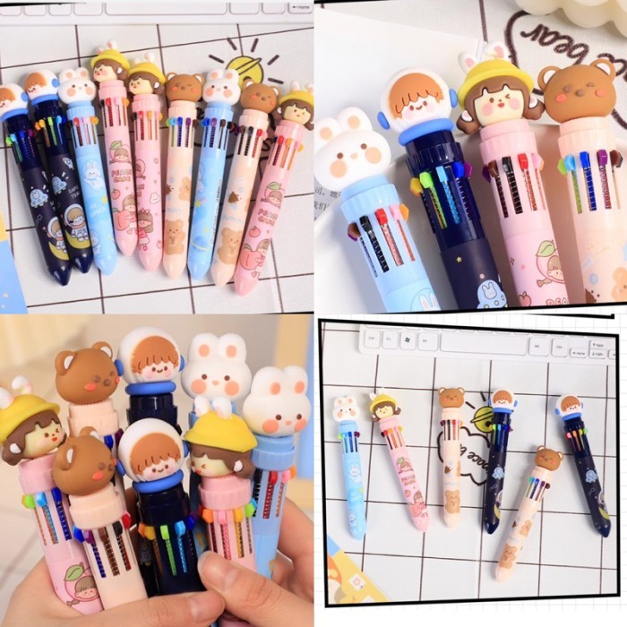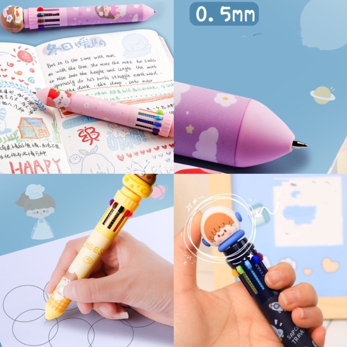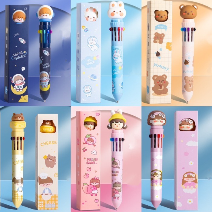 Pulpen 10 warna murah ballpoint 10 colors pulpen viral pulpen korea - space