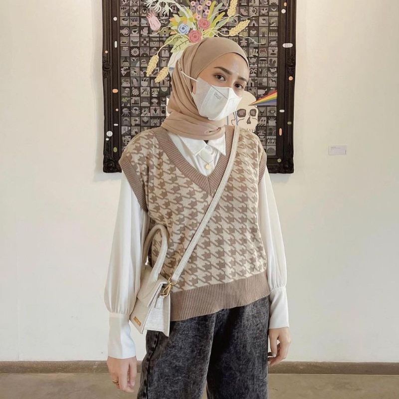 Jennie Vest rajut Houndstooth PREMIUM Oversized