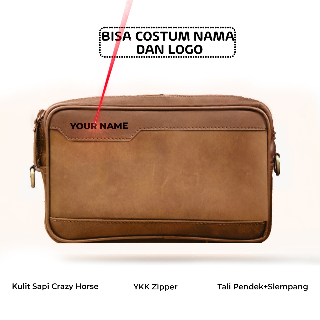 Clutch Bag 3 in 1 Kulit Sapi Asli Crazy Horse The Galax Costum Nama Logo