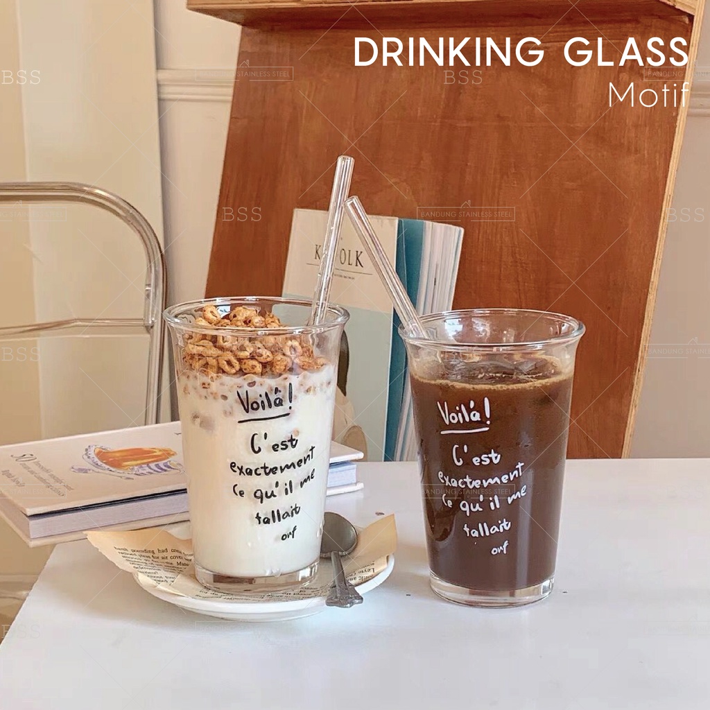 Glass cafe Coffee 350ml Gelas Kaca Kopi Jus Juice Dessert cankir unik lucu cantik simple elegan motif