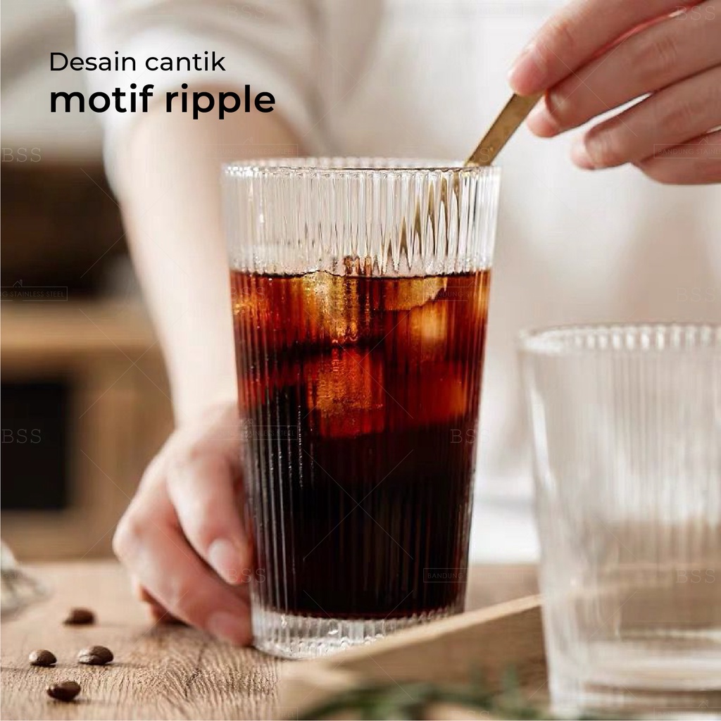 Gelas Kaca Tinggi Ripple 250ml 380ml Highball Glass Mojito Cocktail Susu Teh