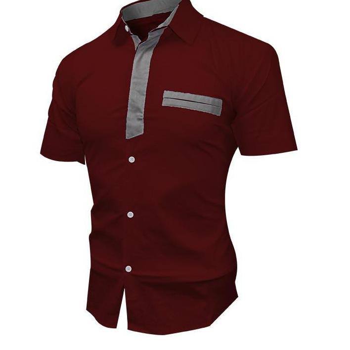Buruan!! HEM MONTELI KEMEJA ATASAN PRIA LENGAN PENDEK KEMEJA POLOS CASUAL SLIMFIT PUTIH HITAM MARON