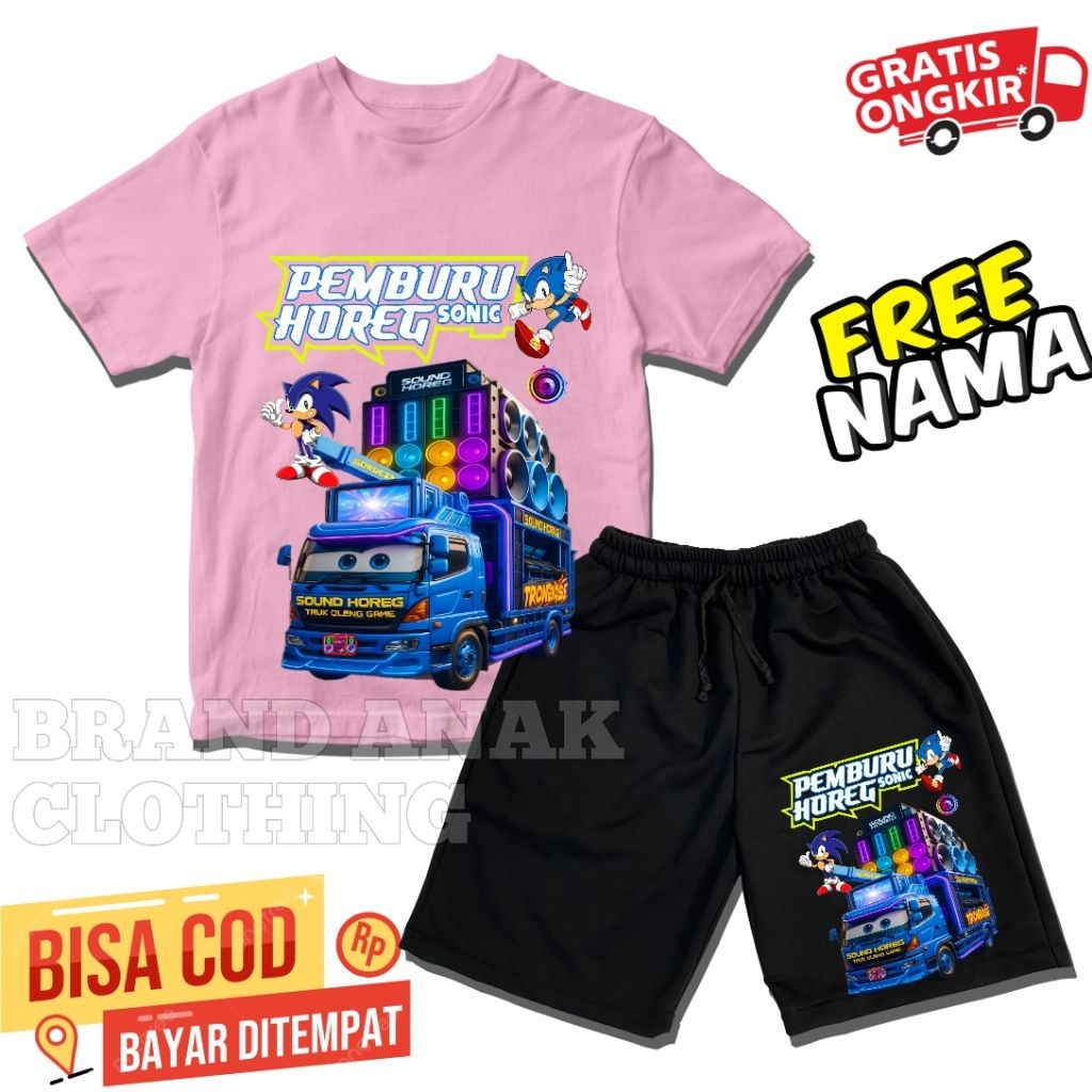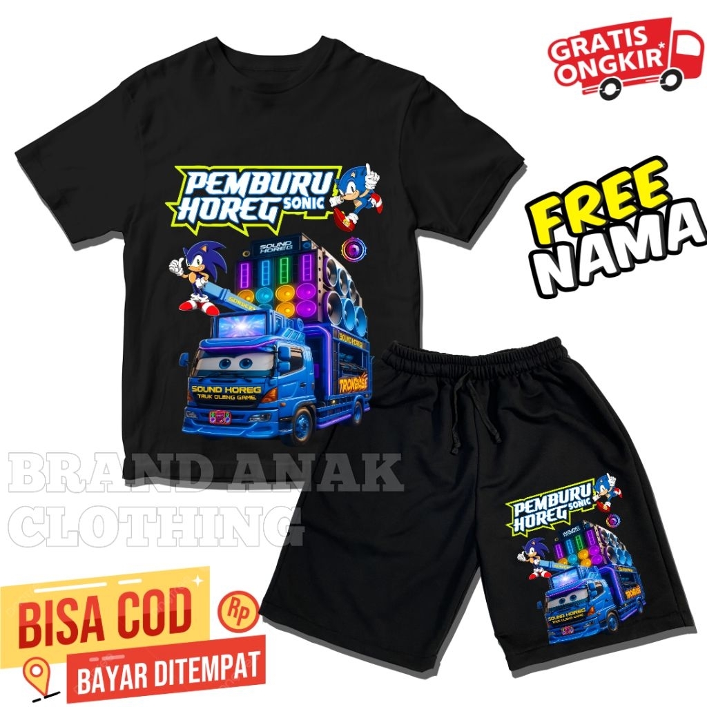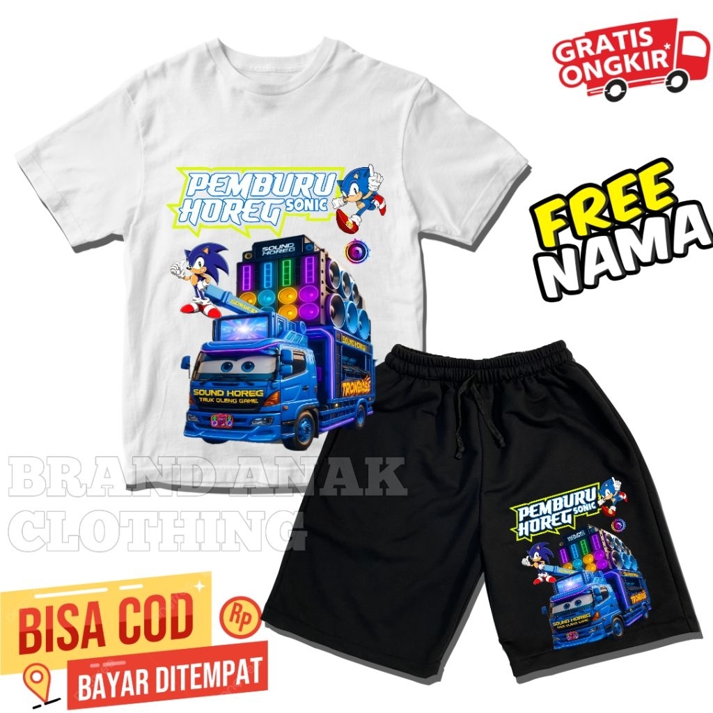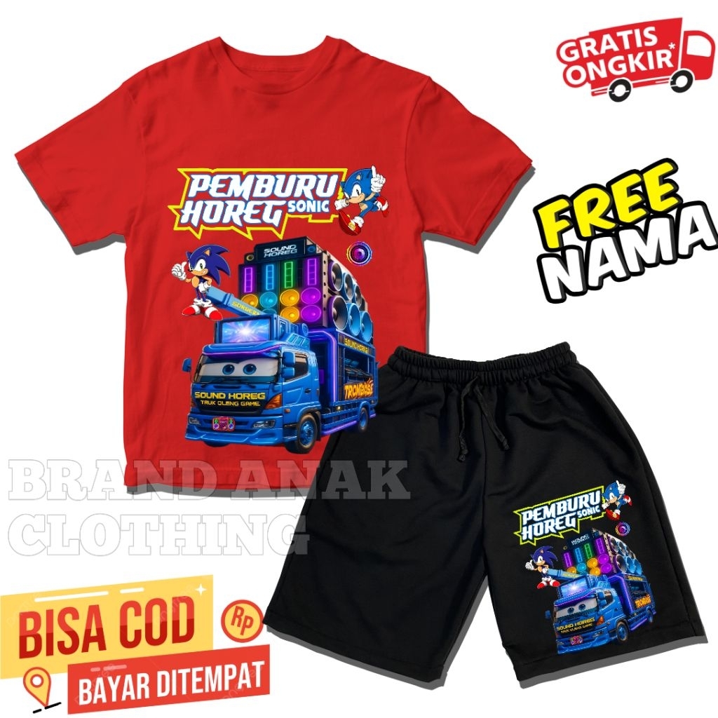 BISA COD STELAN CELANA & BAJU ANAK SONIC PEMBURU HOREG NEW FASHION ANAK VIRAL[GRATIS NAMA]