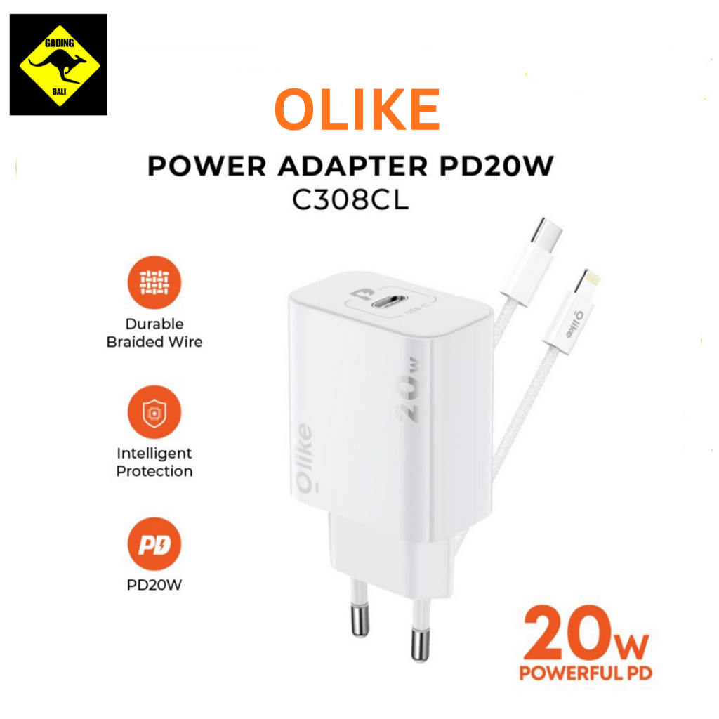 CHARGER IPHONE OLIKE C308CL Adaptor Charge rPD 20W With Kabel Type C To Lightning Fast Charging