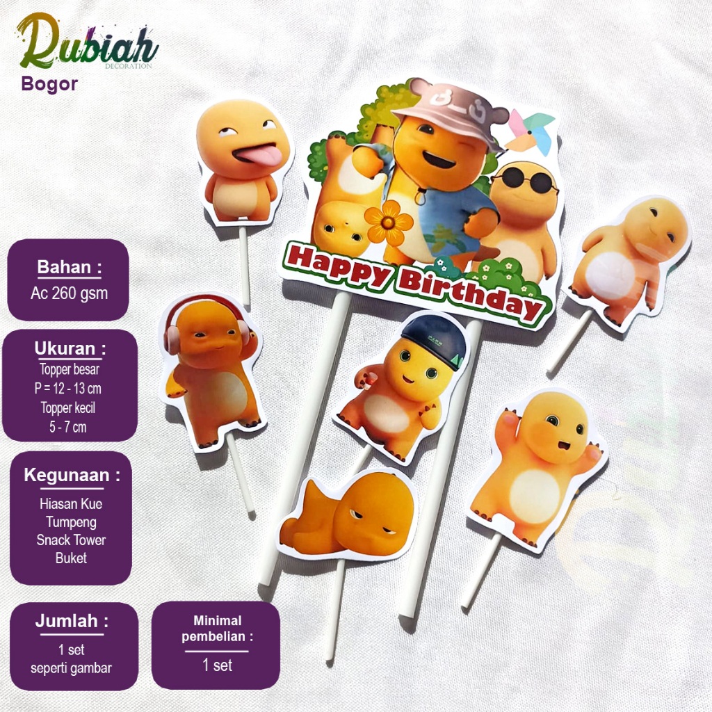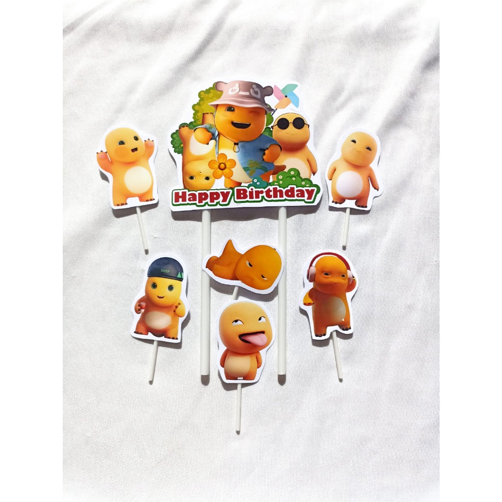 Custom Nama Foto Topper cake Karakter Nailong Dino kuning lucu Hiasan Kue Ulang Tahun / Snack Tower