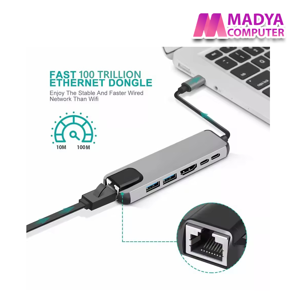 Converter Type-C to USB 3.0 HUB Multiport Adapter 6 in 1