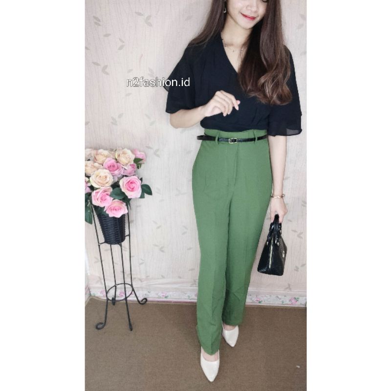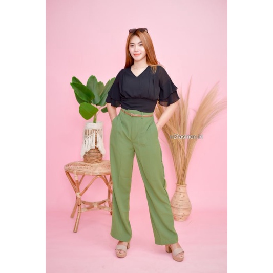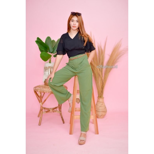 CELANA KULOT/CANDY PANTS/ CELANA SAGE GREEN/CELANA WANITA (REALPICT) -n2fashion