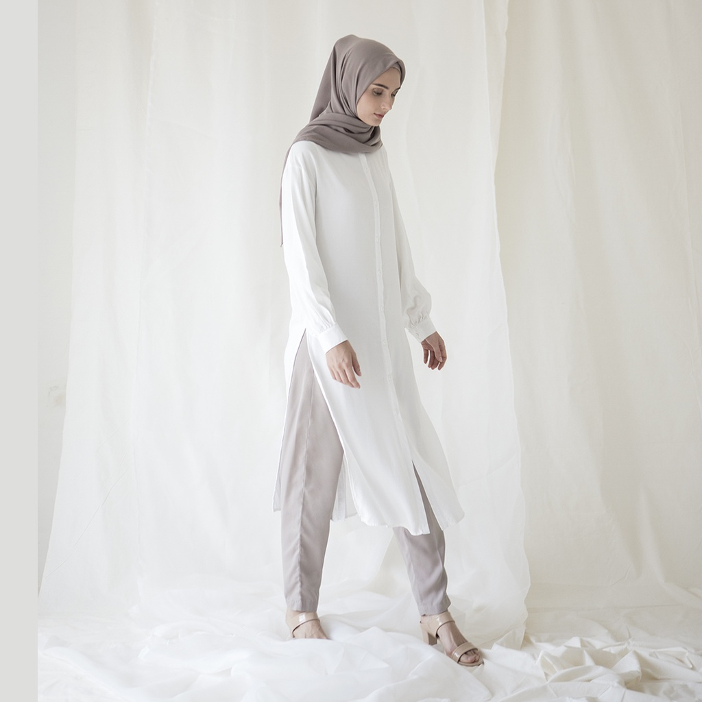 Tari by Aska Label - Tunik Rayon Kancing Lengan Panjang warna hitam, coksu, putih, biru navy, lilac, coklat, biru muda