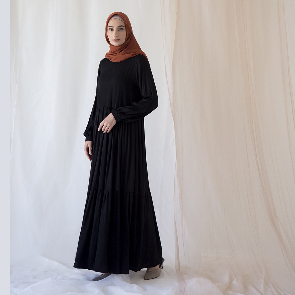 Kayana by Aska Label - Gamis wanita dress Muslim busui friendly dengan detail ruffle warna Hitam, Latte, Olive, Navy