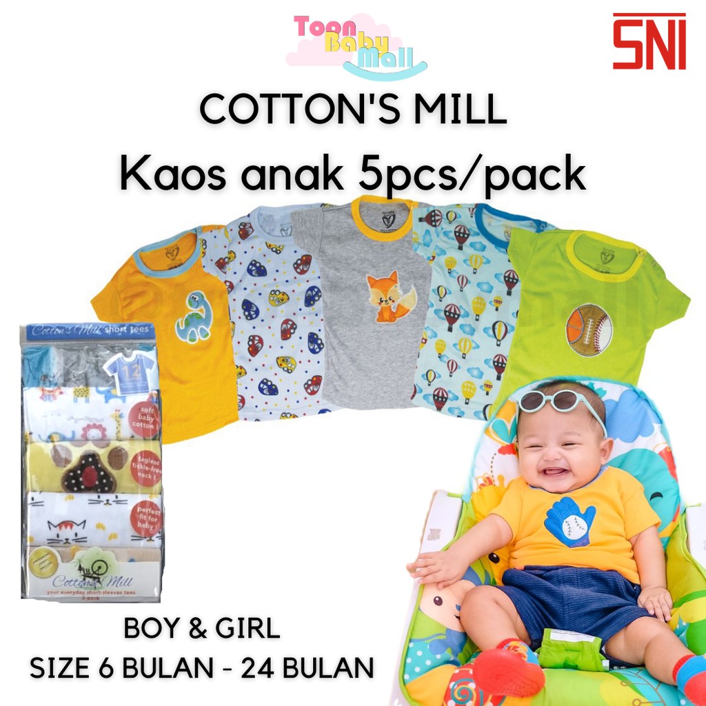 [BISA COD] CM Kaos Katun Baby isi 5pcs Tees Lengan Pendek Cotton’s Mill