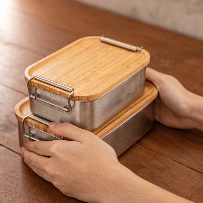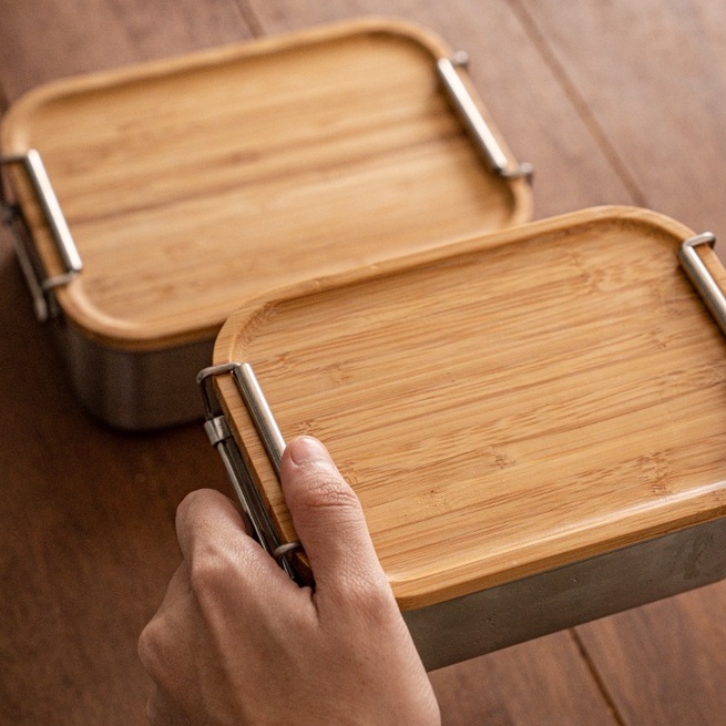 Lunch Box Stainless With Bamboo Lid UG-183 E&F