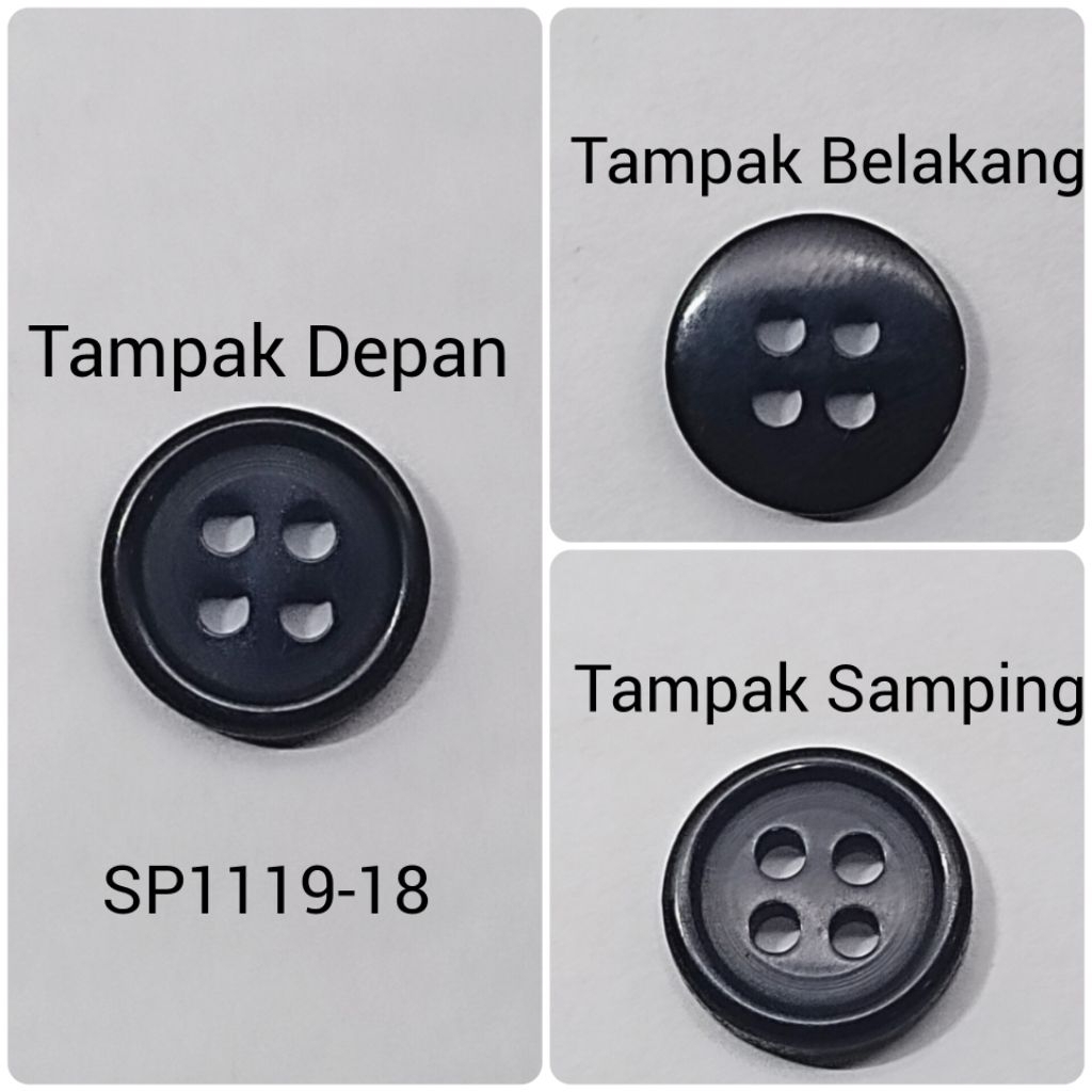 Kancing Polyester DOUBLE ONE SP1119-18'" (±11,5mm) Hitam asli