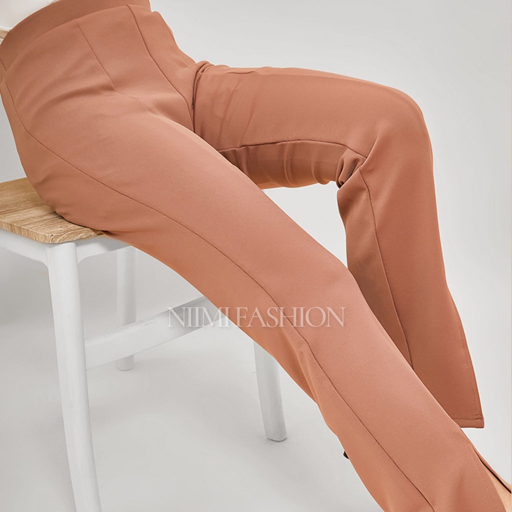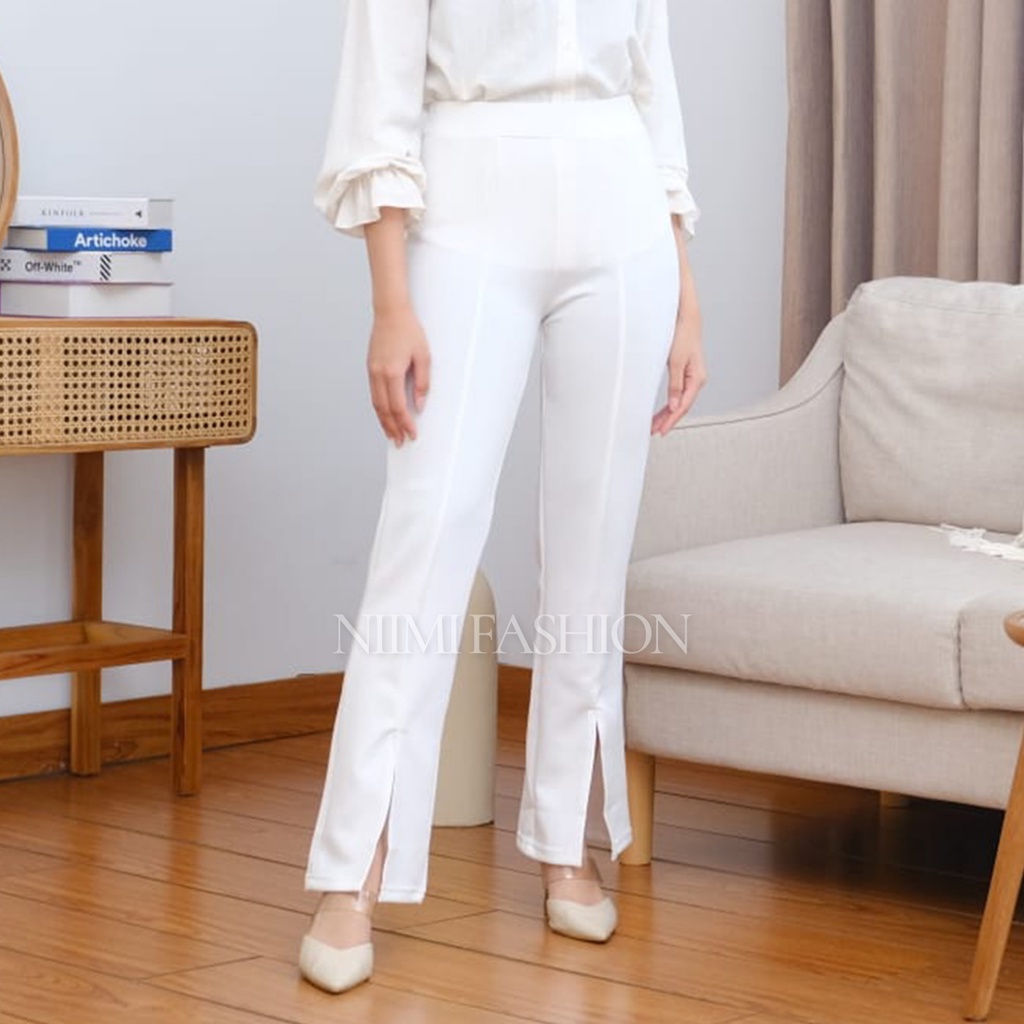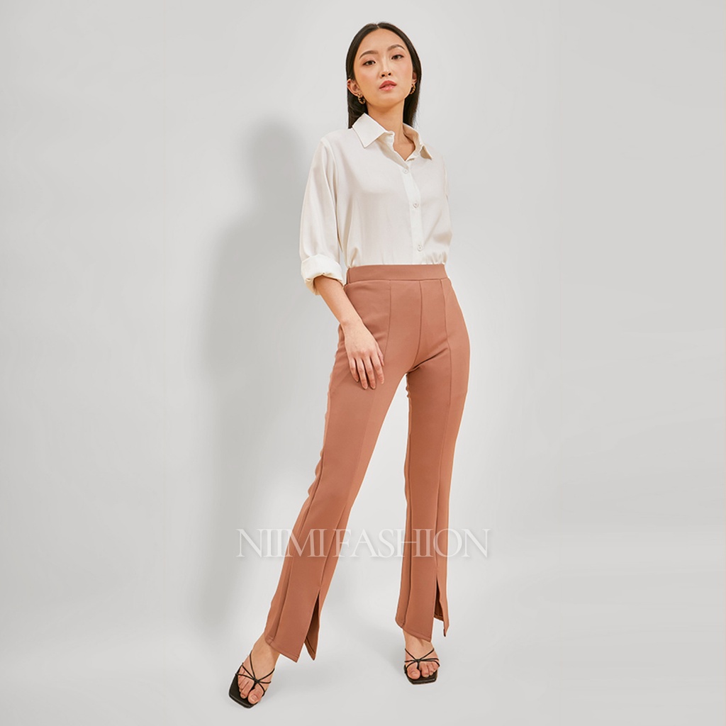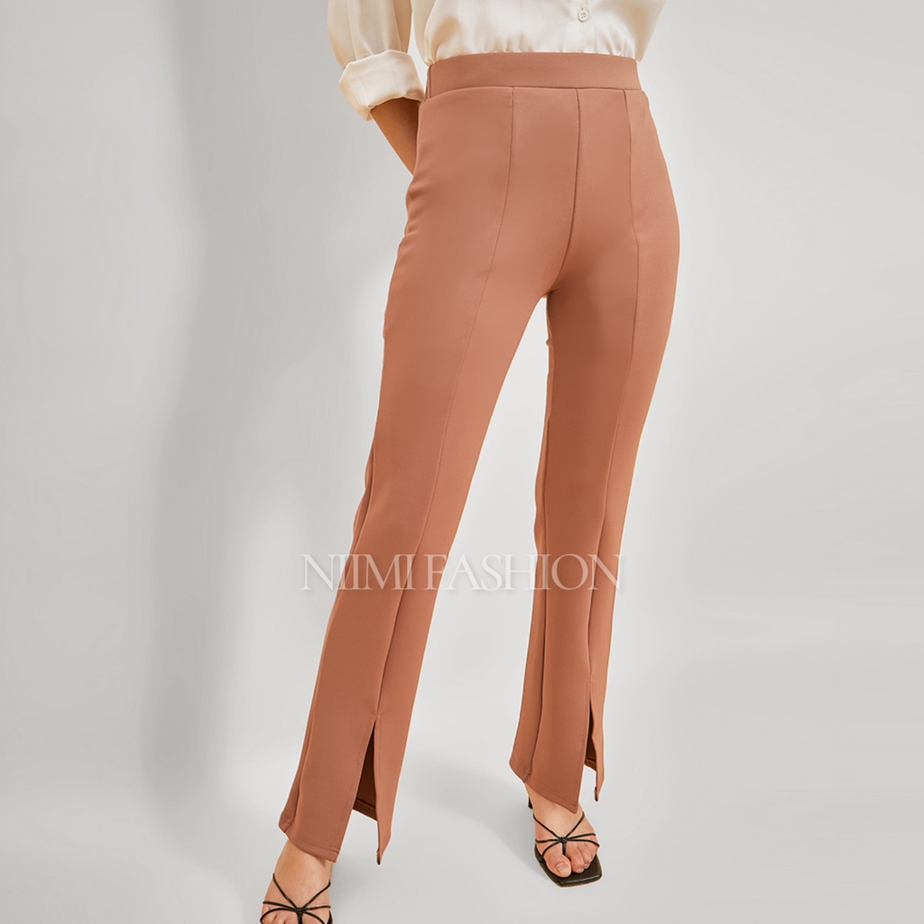 NIMI - Celana Cutbray Scuba Highwaist Wanita Flare Pants Belah Depan