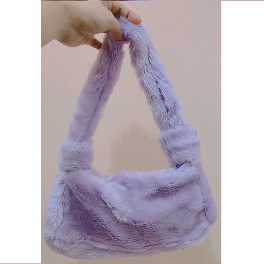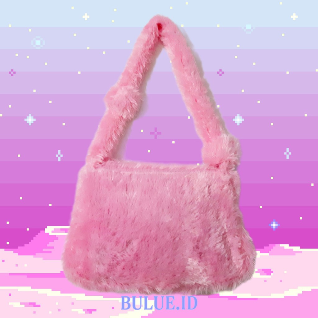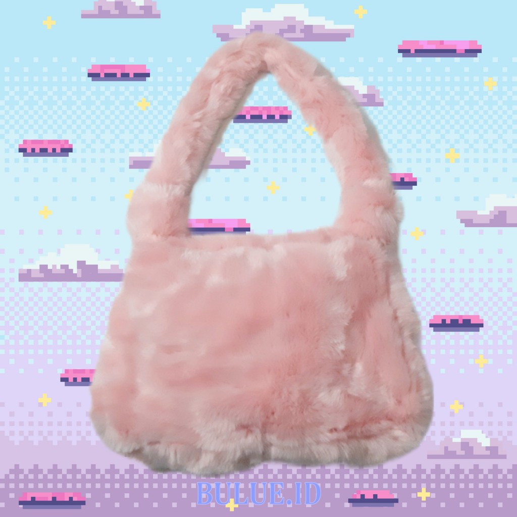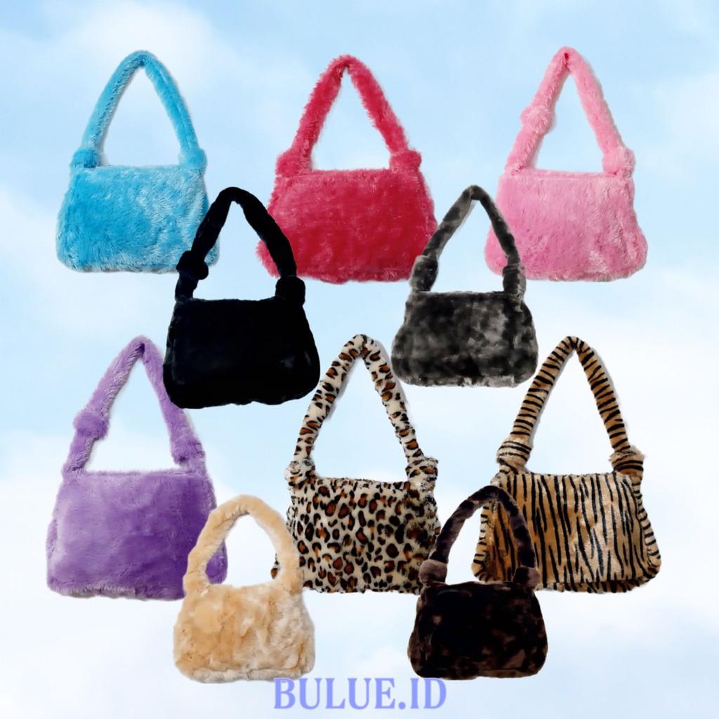 BULUE HANDMADE SHOULDER FURBAG - Fluffy Bag- Tas Bulu Fur Hewan- Animal- Y2K Aesthetic tas bahu