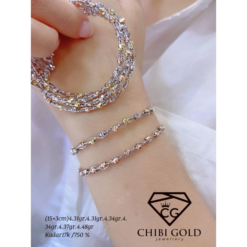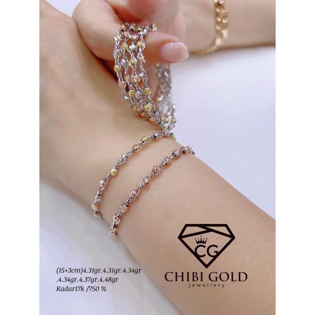 CHIBI GOLD JAWELLERY - Gelang Coker Boba ukir kombinasi 750 kadar 17K - chibigold