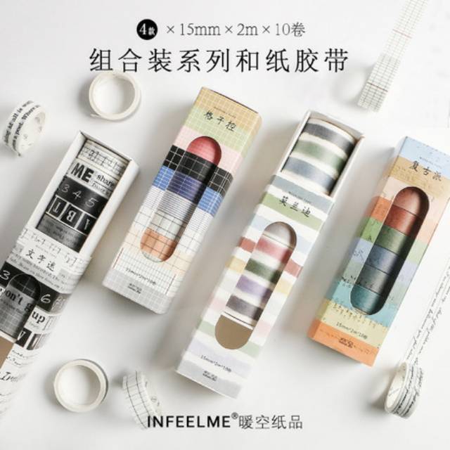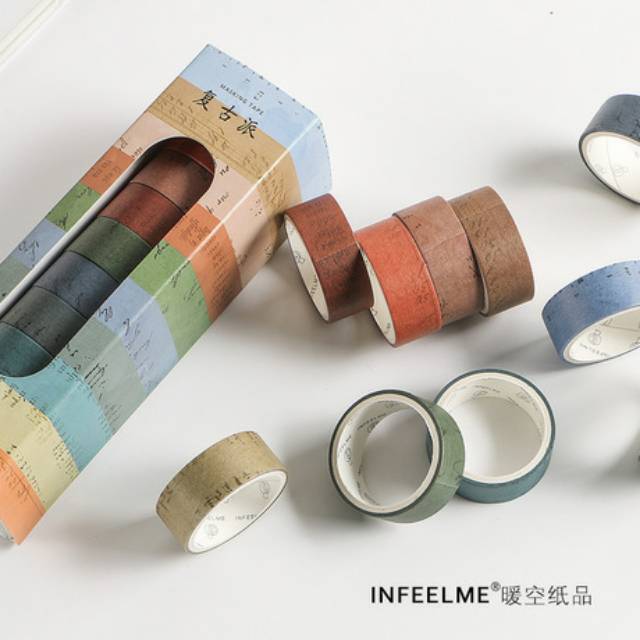 [LBS] 10 pcs Washi Masking Tape Motif Retro untuk Bullet Journal Diary Scrapbook Studygram