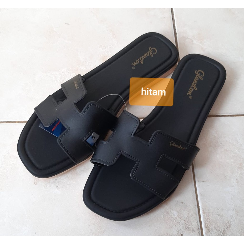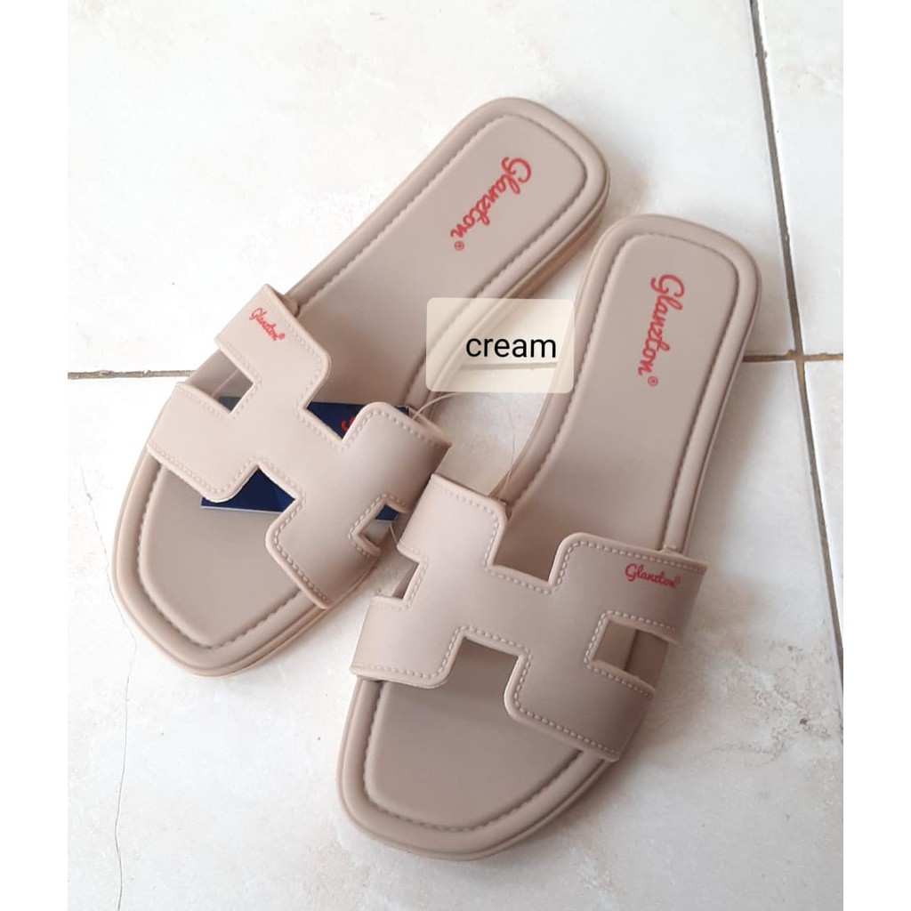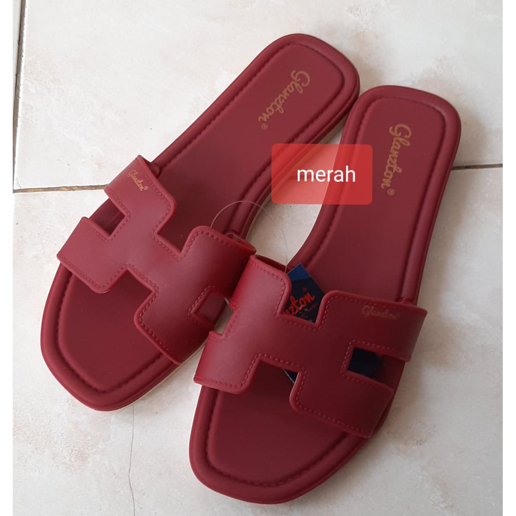 Sandal Flat Wanita Casual Sendal Jelly Slip Polos L1838 Merk Glanzton
