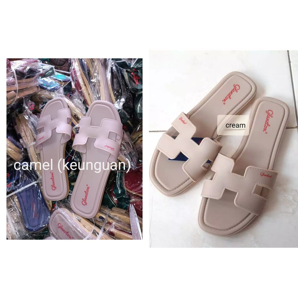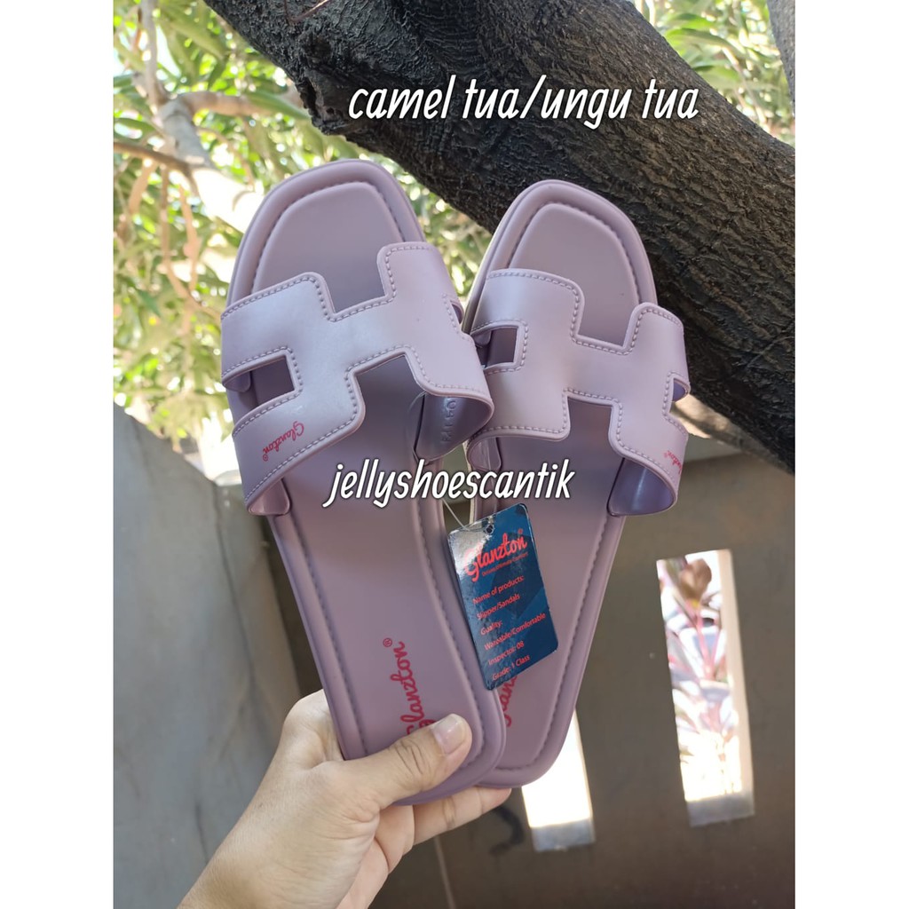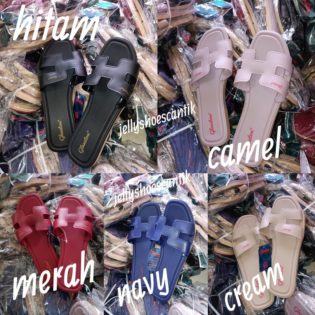 Sandal Flat Wanita Casual Sendal Jelly Slip Polos L1838 Merk Glanzton