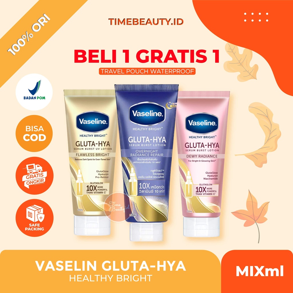 (READY) Vaseline Gluta Hya Body Serum Dewy Flawless Bright Radiant Burst UV Lotion 200ml vaseline overnight vaseline biru pink gold