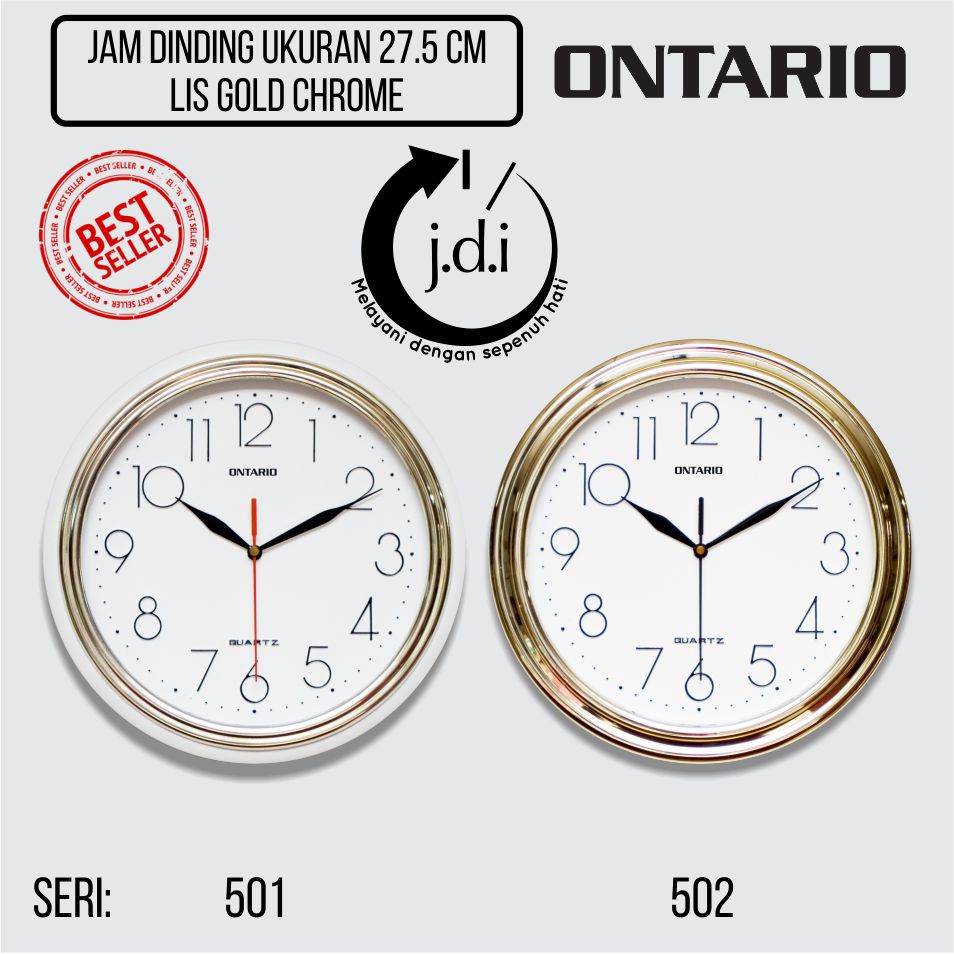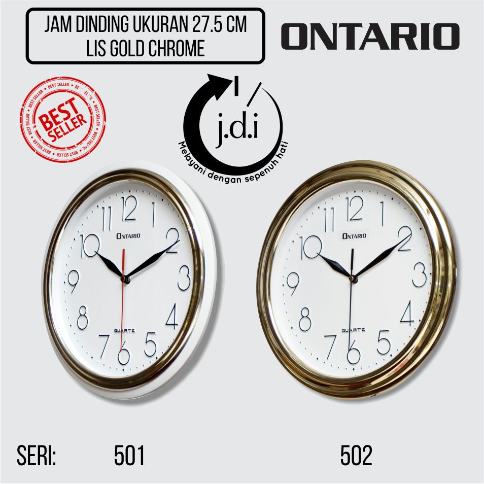Jam Dinding Ontario Diameter 27.5 CM - List Gold Chrome / Full Chrome