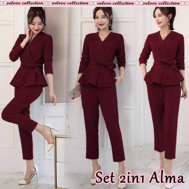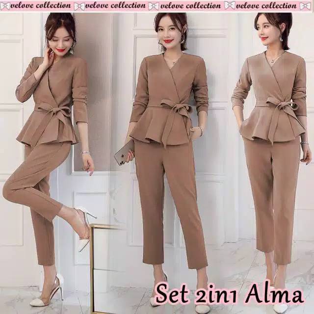 SET 2IN1 ALMA - SETELAN IMPORT GAYA KOREA TERBARU - BAJU KERJA KANTOR MODEL KIMONO PANJANG MURAH