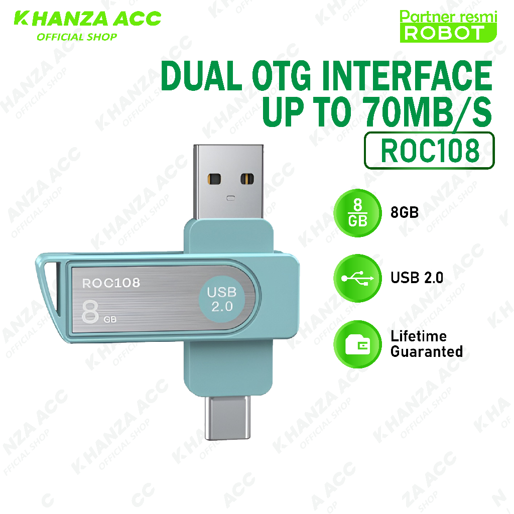 ROBOT ROC108 / ROC116 / ROC132 / ROC164 Flashdisk 8GB / 16GB / 32GB / 64GB Otg Dual Drive USB A Dan Type C