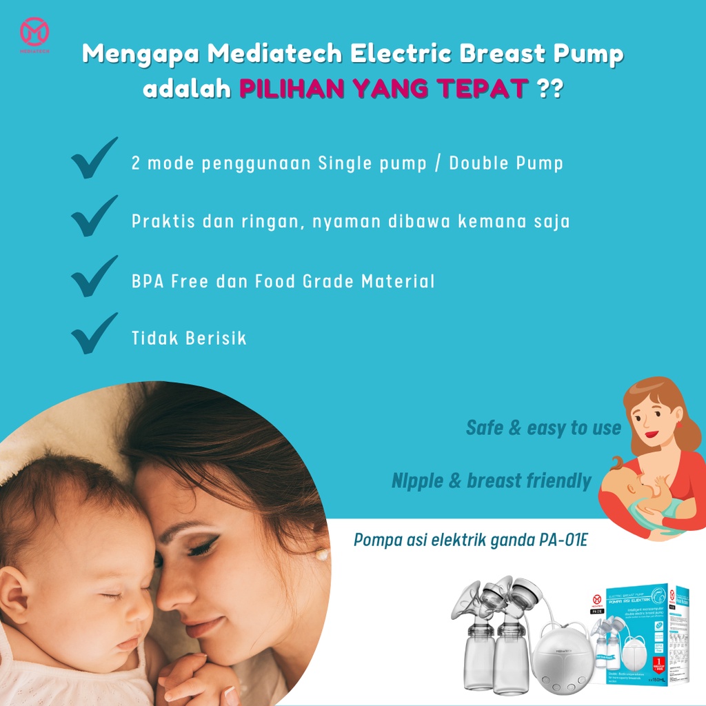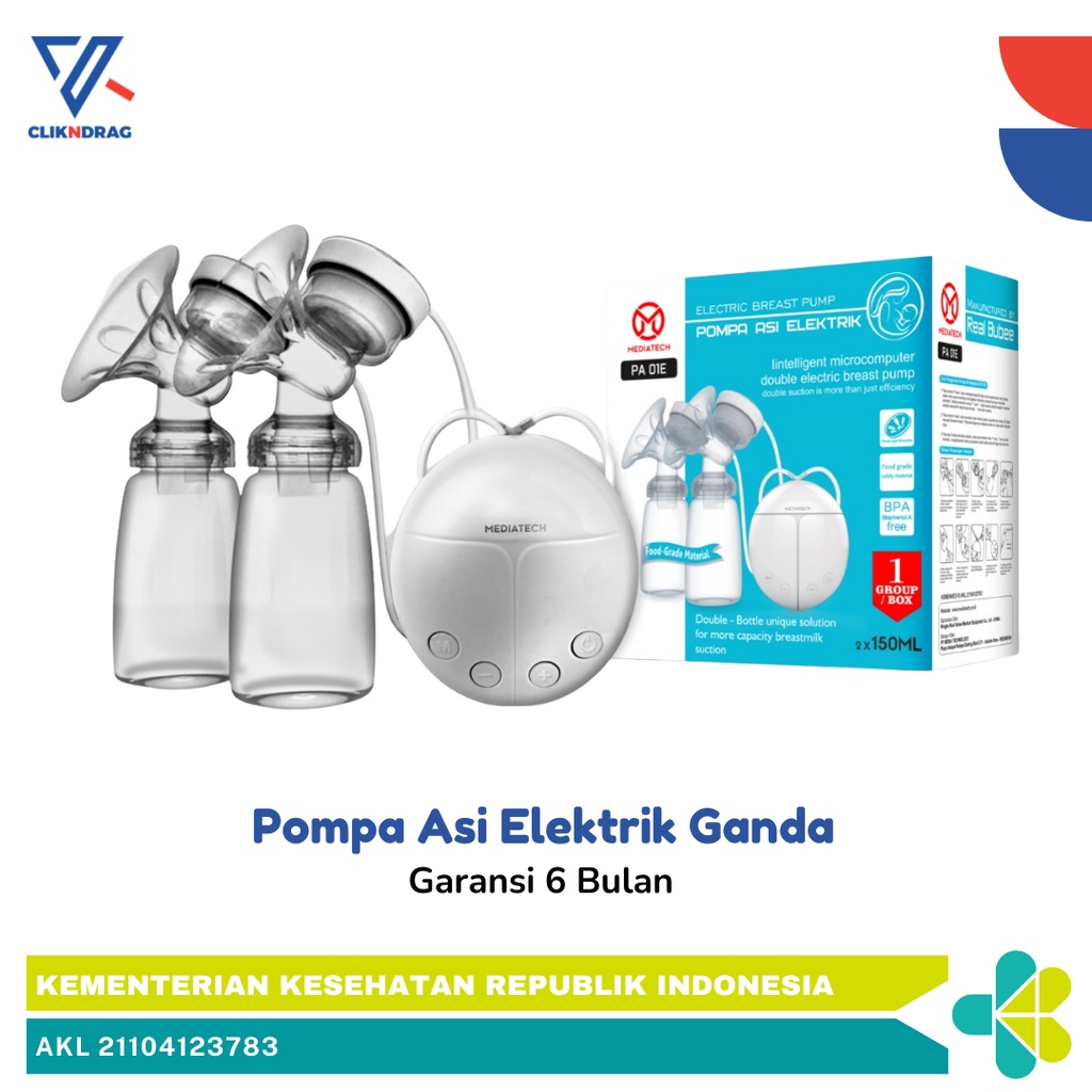 Pompa Asi Elektrik Ganda Mediatech x Real Bubee Food Grade BPA Free Breast Pump PA 01E Free DOT B100070