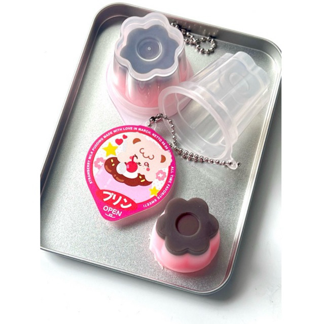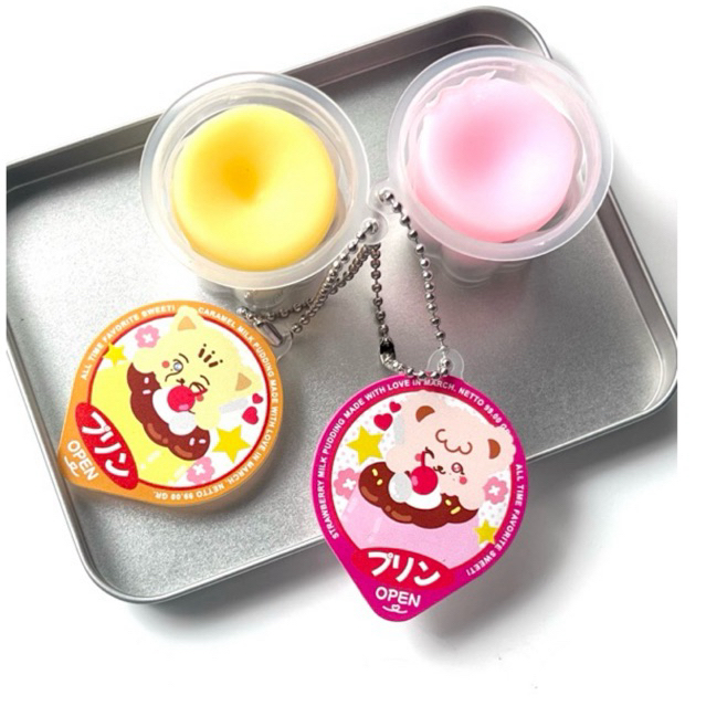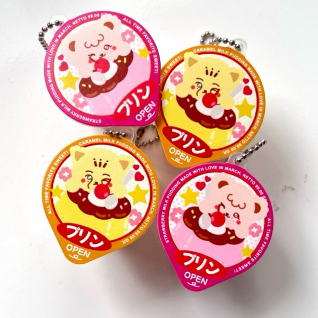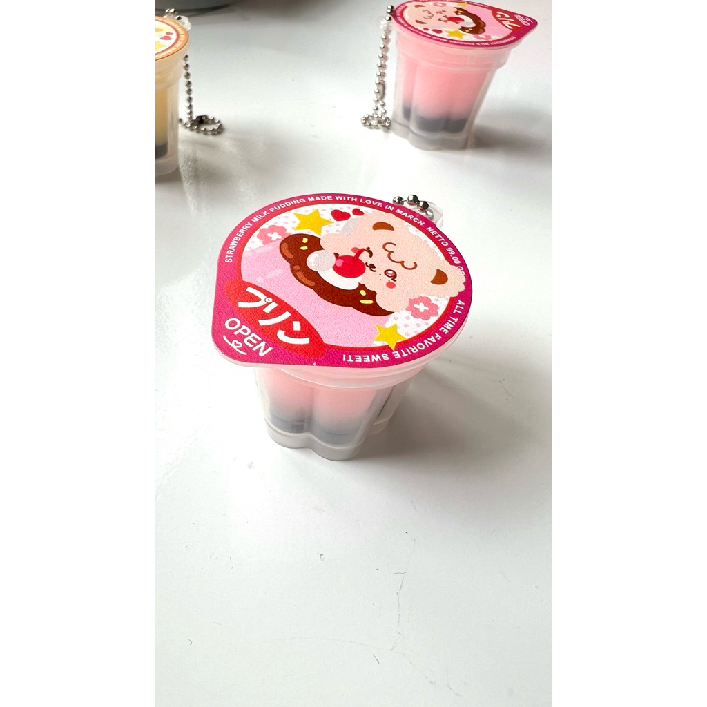 purin charm pudding squishy keycharm / caramel strawberry bagcharm gantungan kunci keychain pudding character beruang cheetah bear korea cute