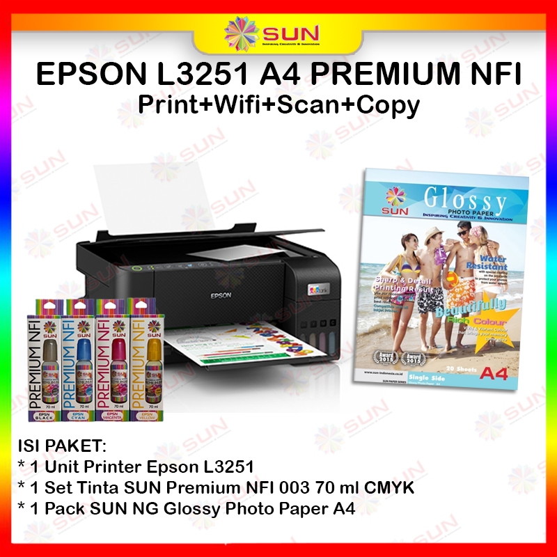 Paket Printer Epson Cetak Foto NFI L121 / L1210 / L1250 / L1251 / L3210 / L3211 / L3250 / L5290 - Print Wifi Scan Copy