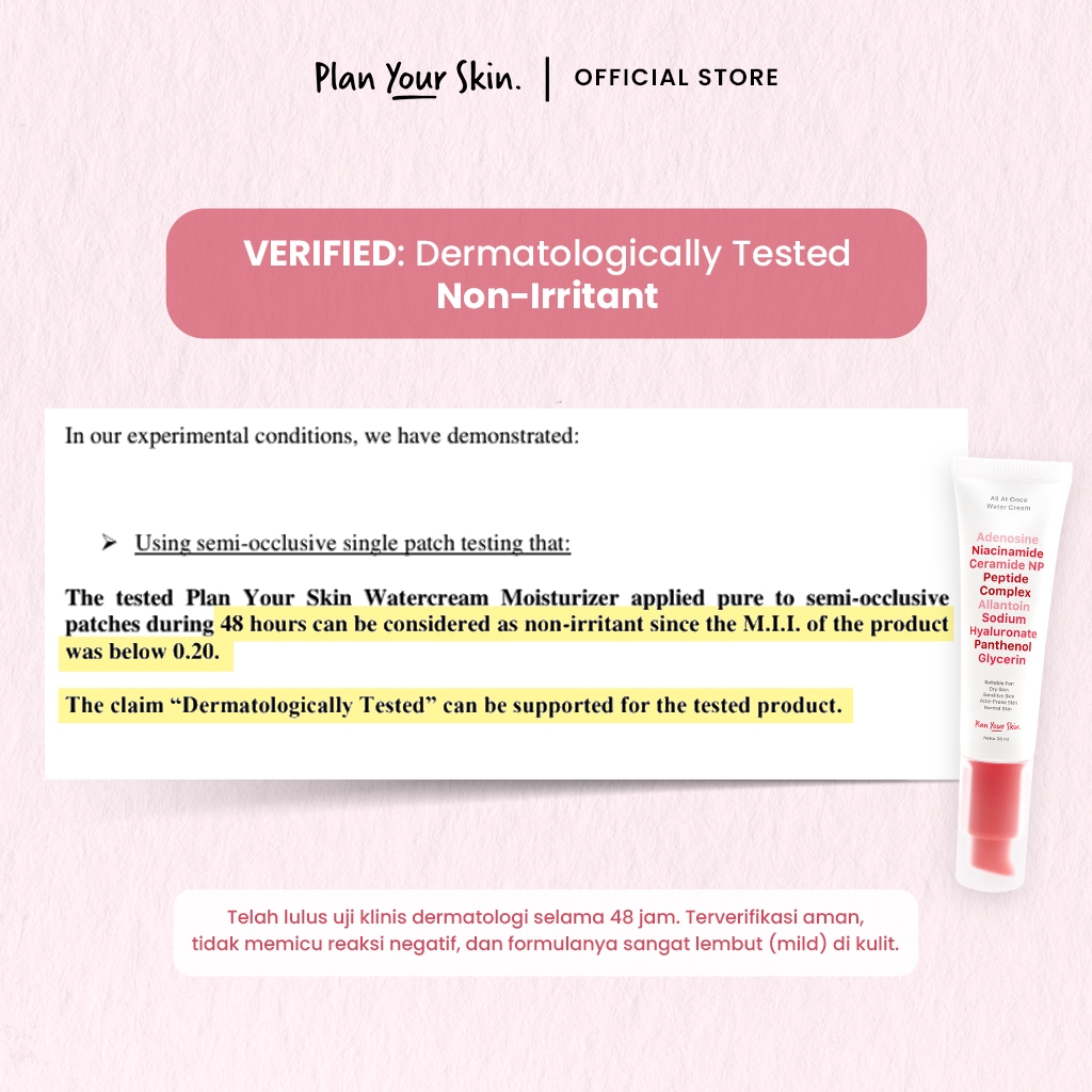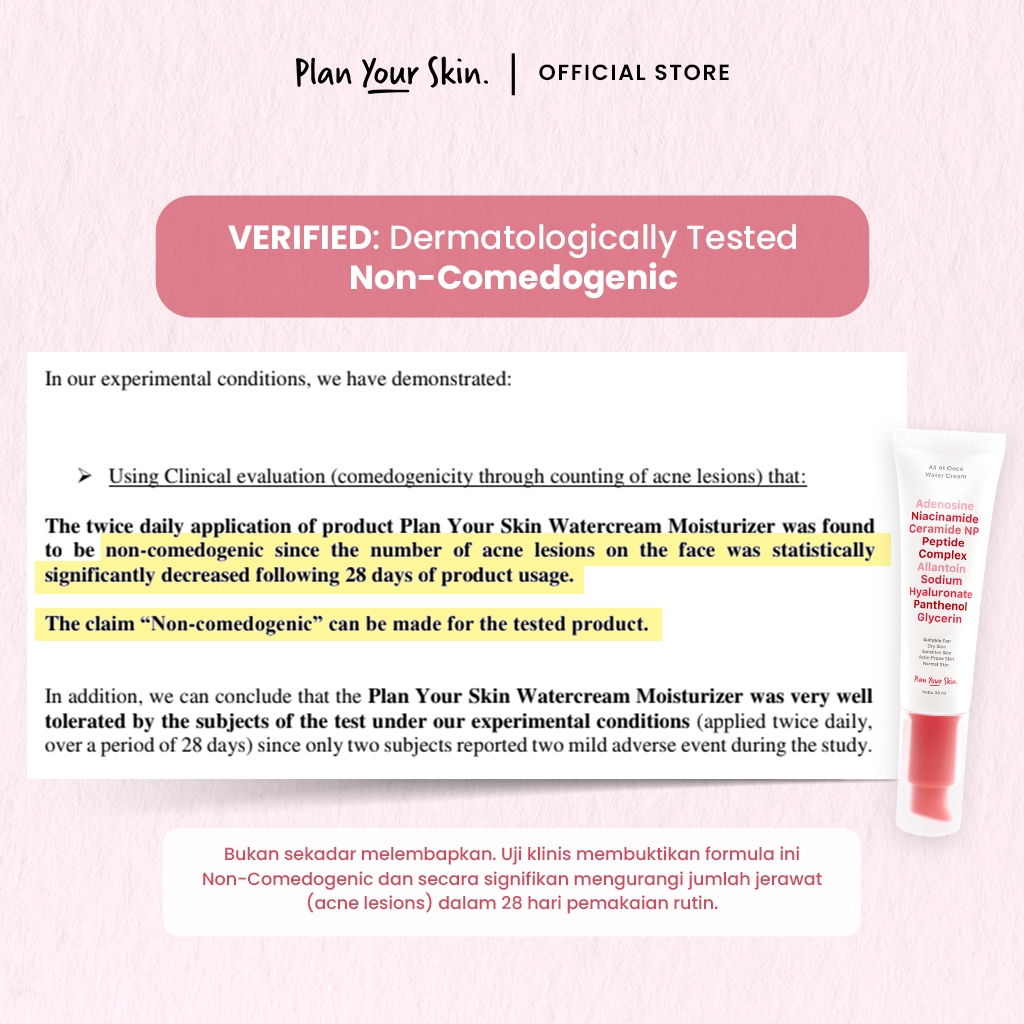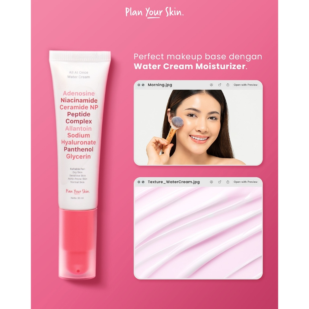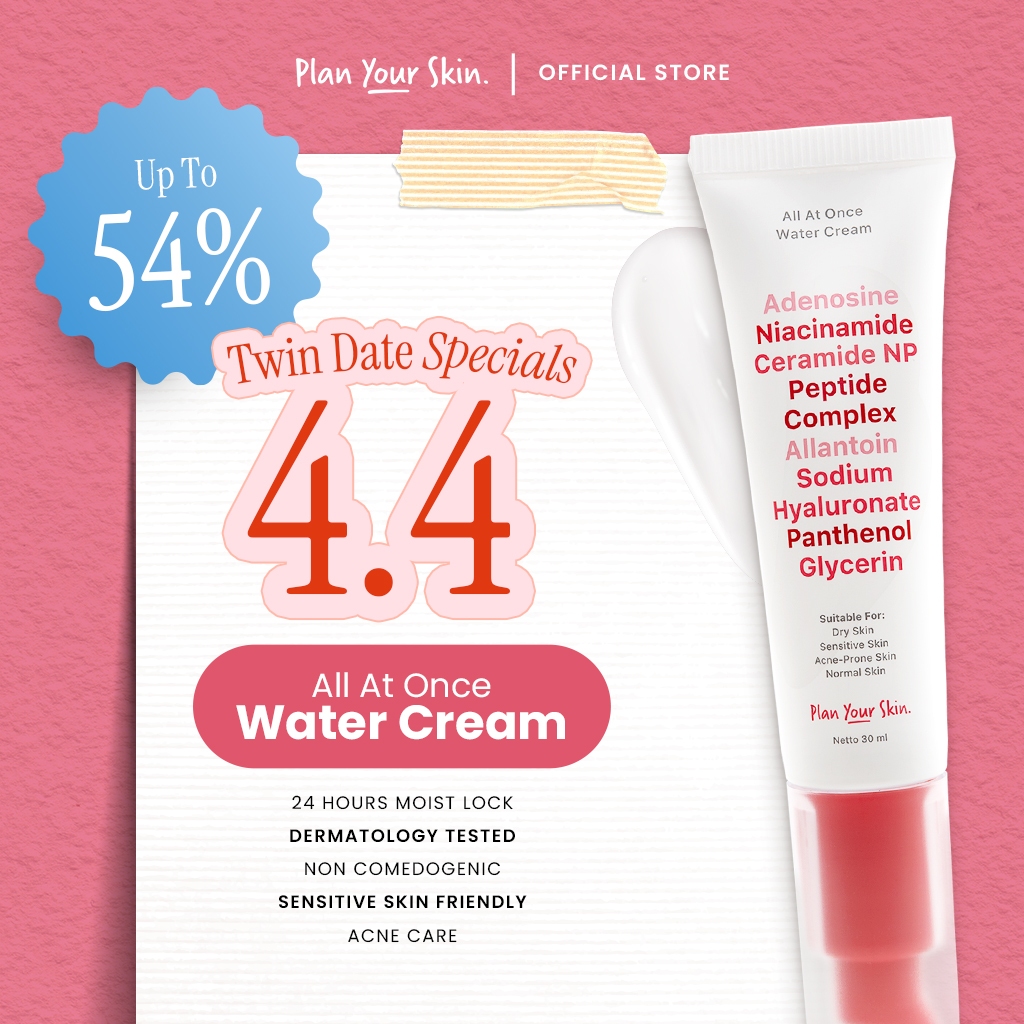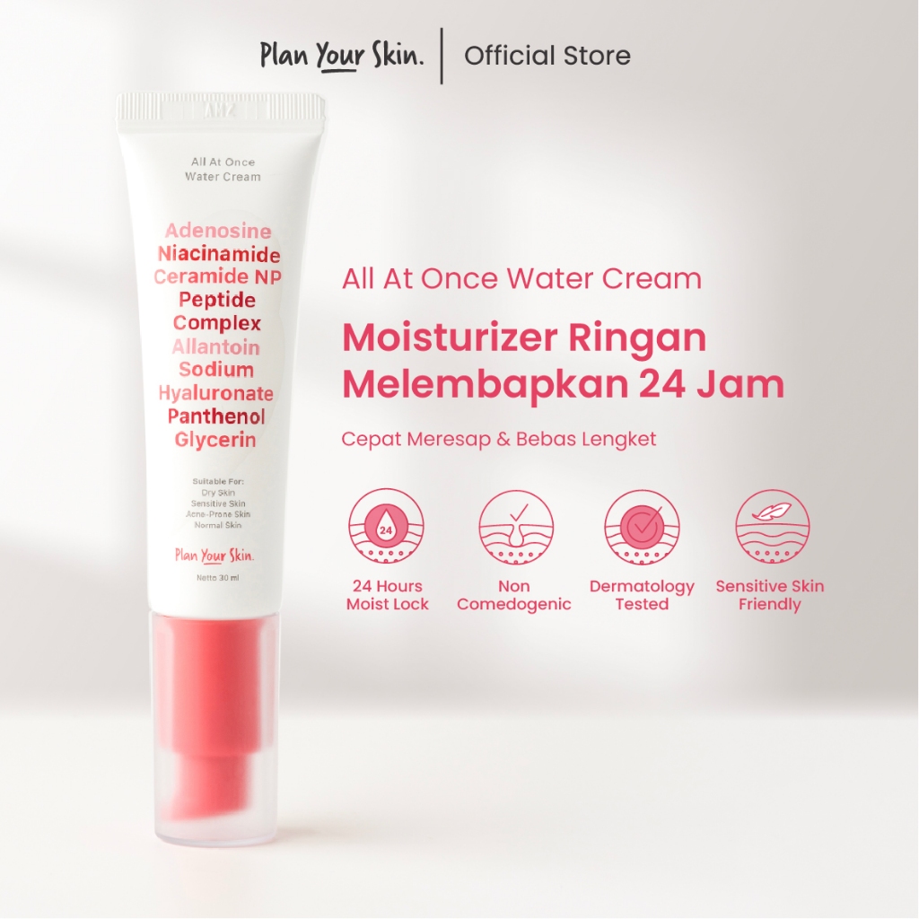 Plan Your Skin - Water Cream Moisturizer 30ml Acne Niacinamide Ceramide Brightening Mencerahkan Flek