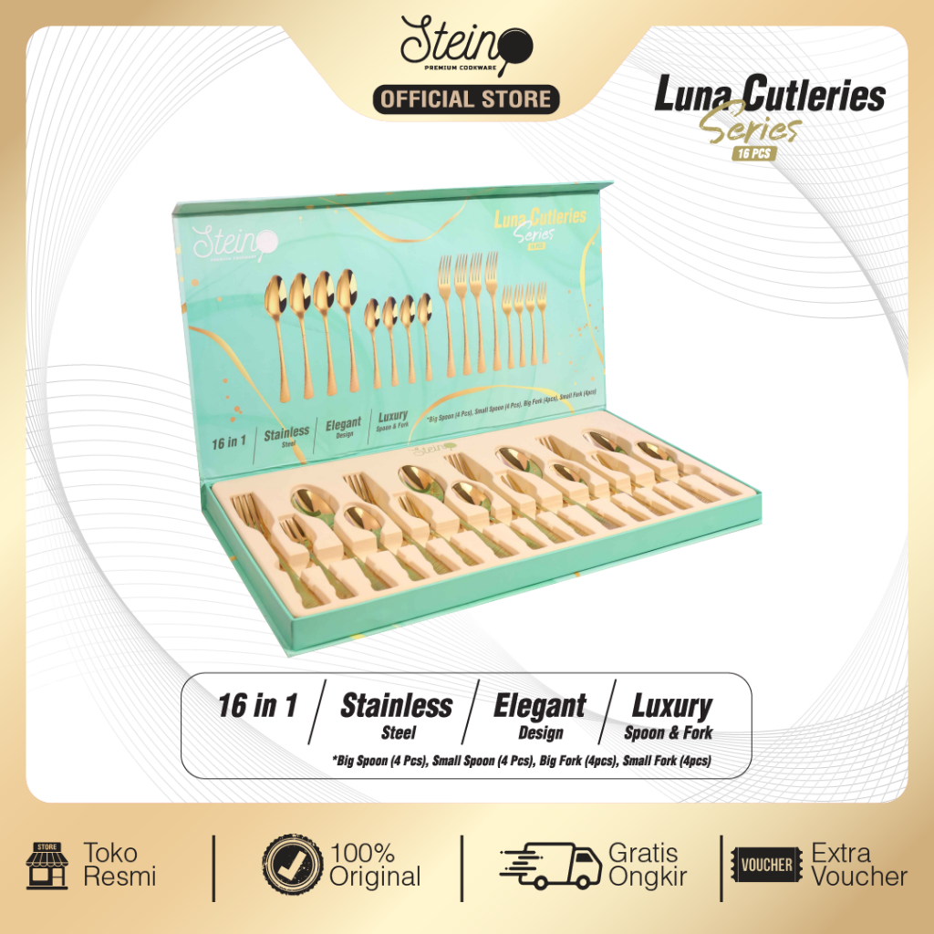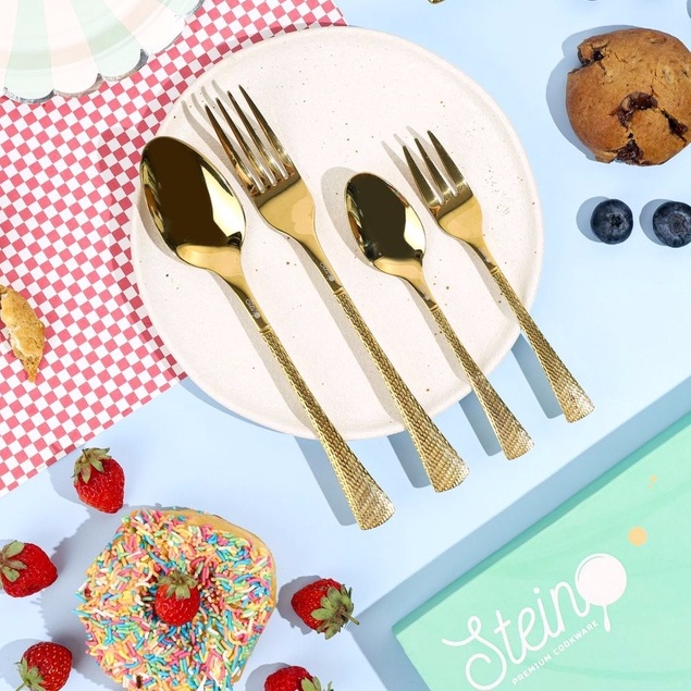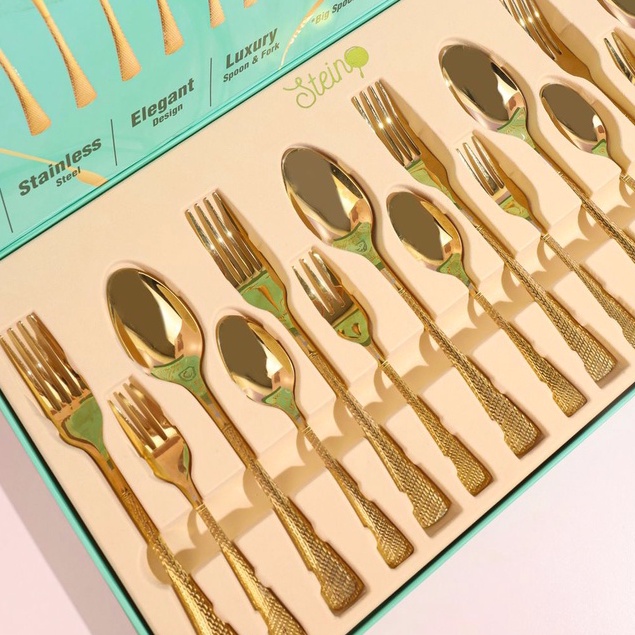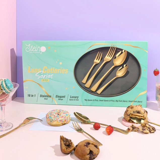 STEIN Luna Cutleries (GOLD Stainless Steel Sendok Garpu)- 16 Pcs