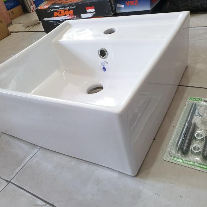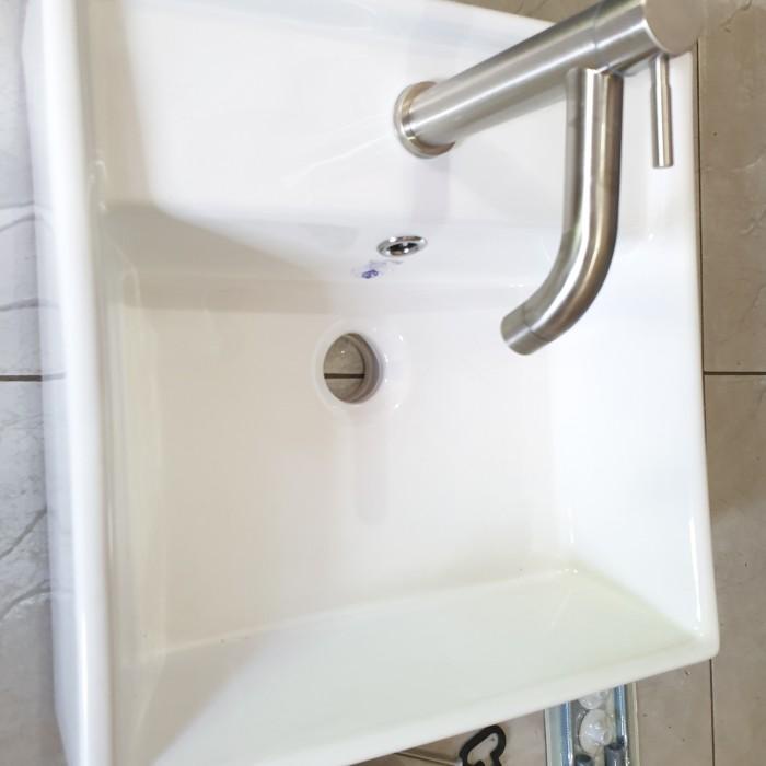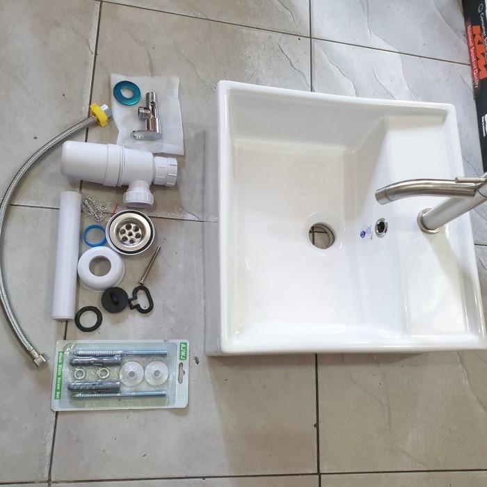 Wastafel Keramik Kotak Besar Paket Lengkap Kran Sus304