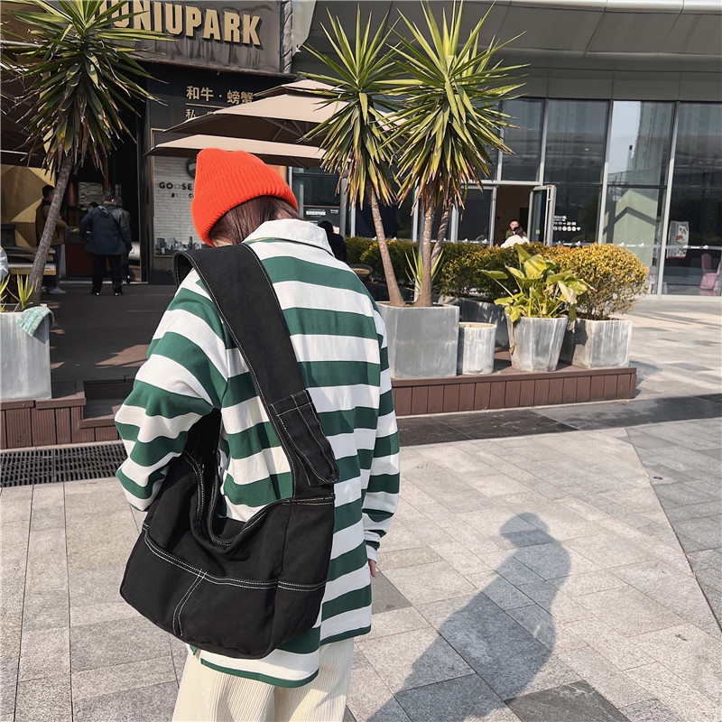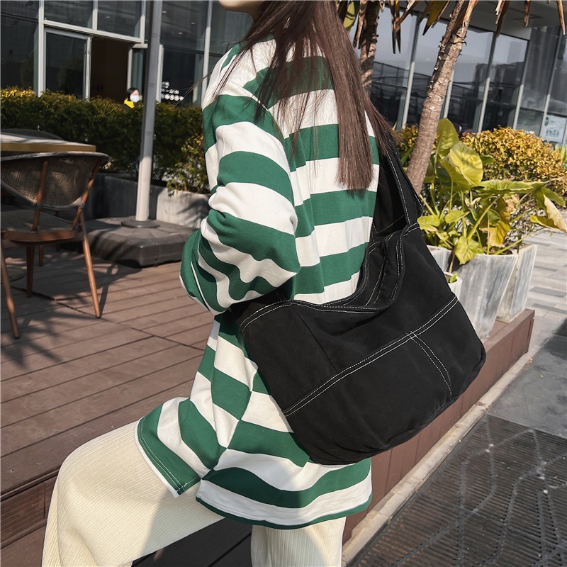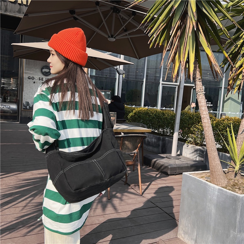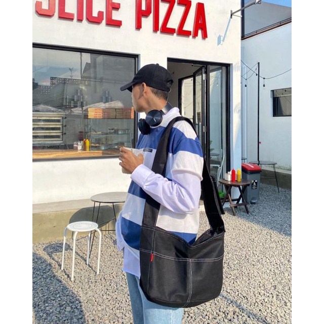 STONE Zipper Canvas Sling Bag Tas Selempang Kanvas Hobo